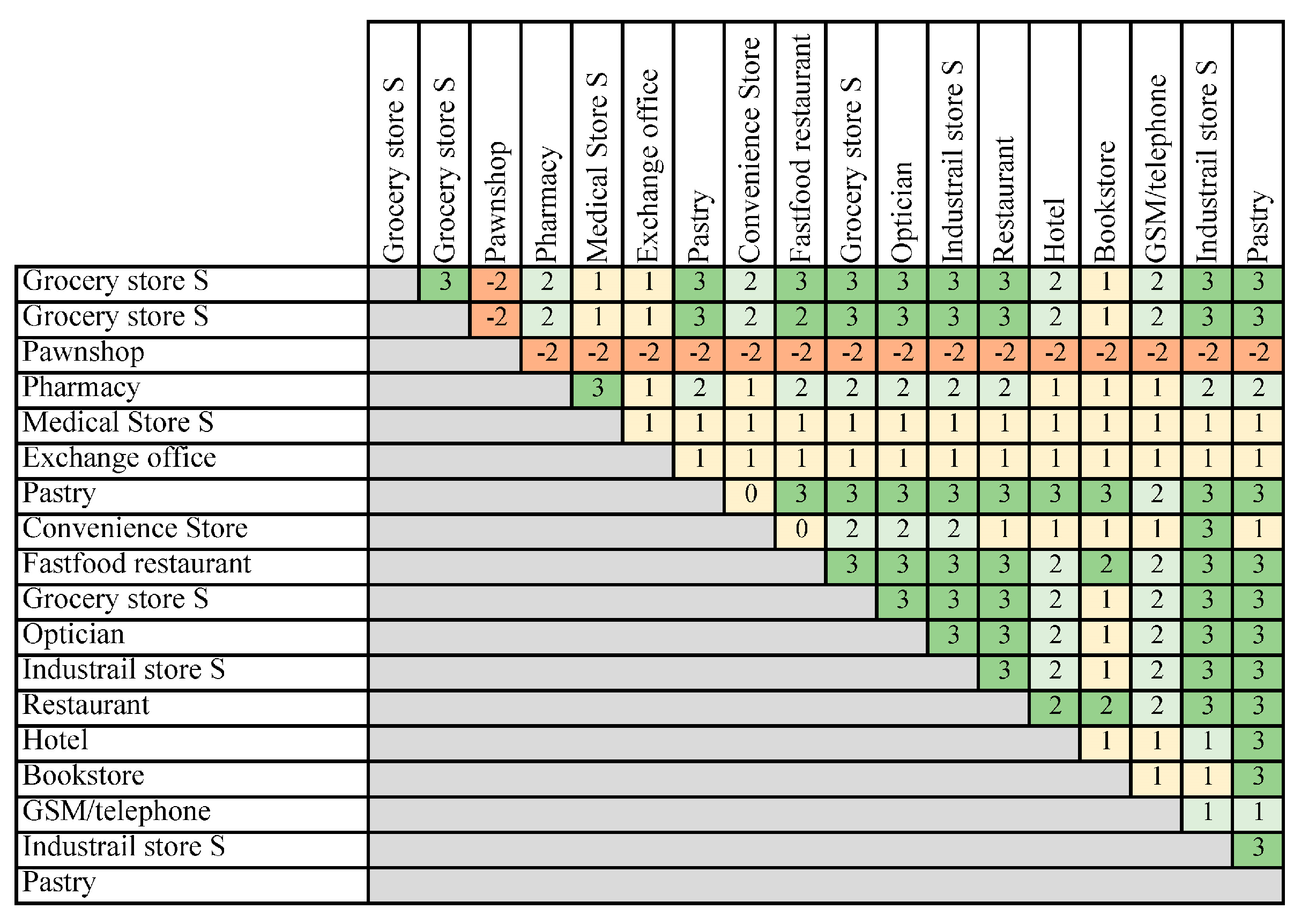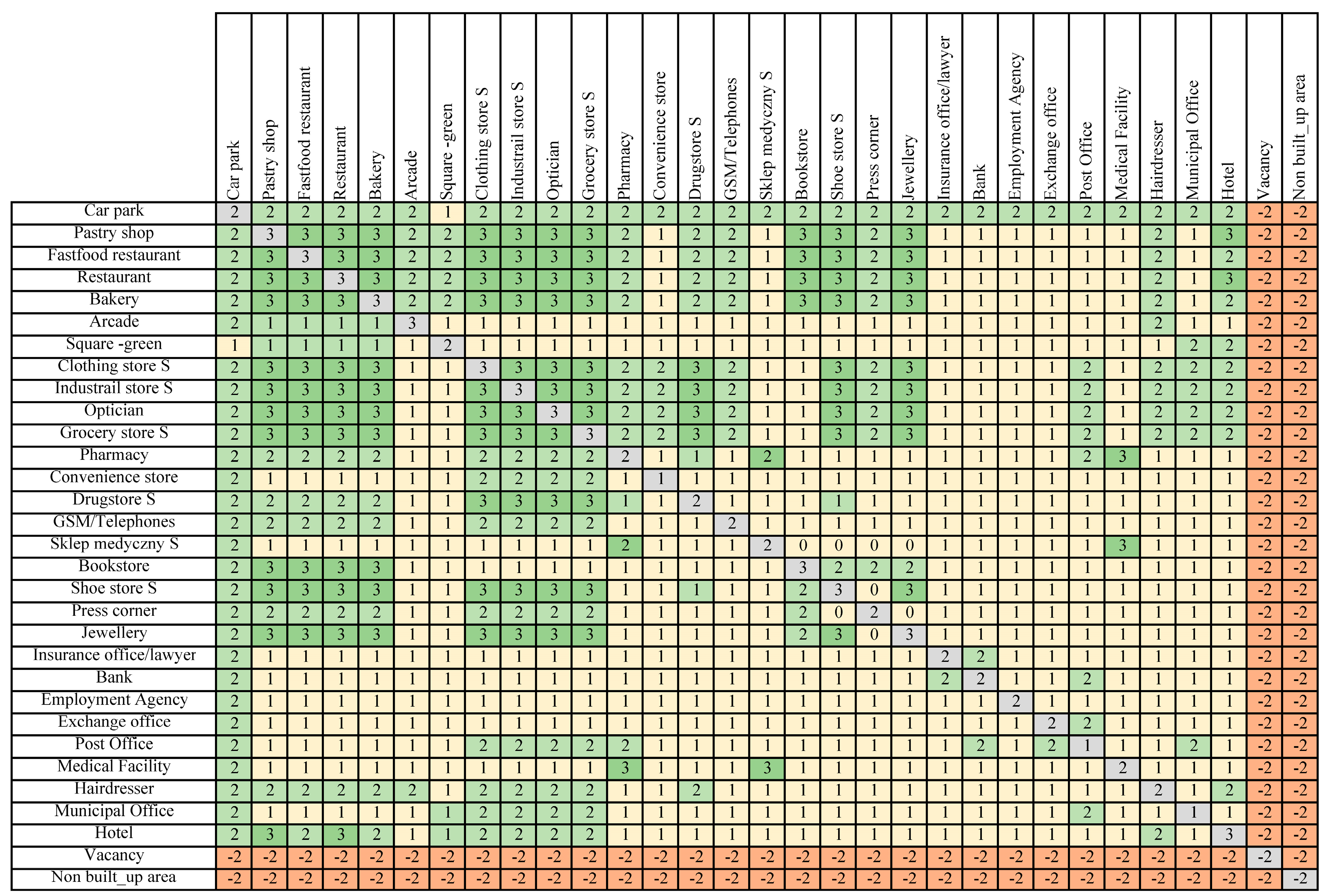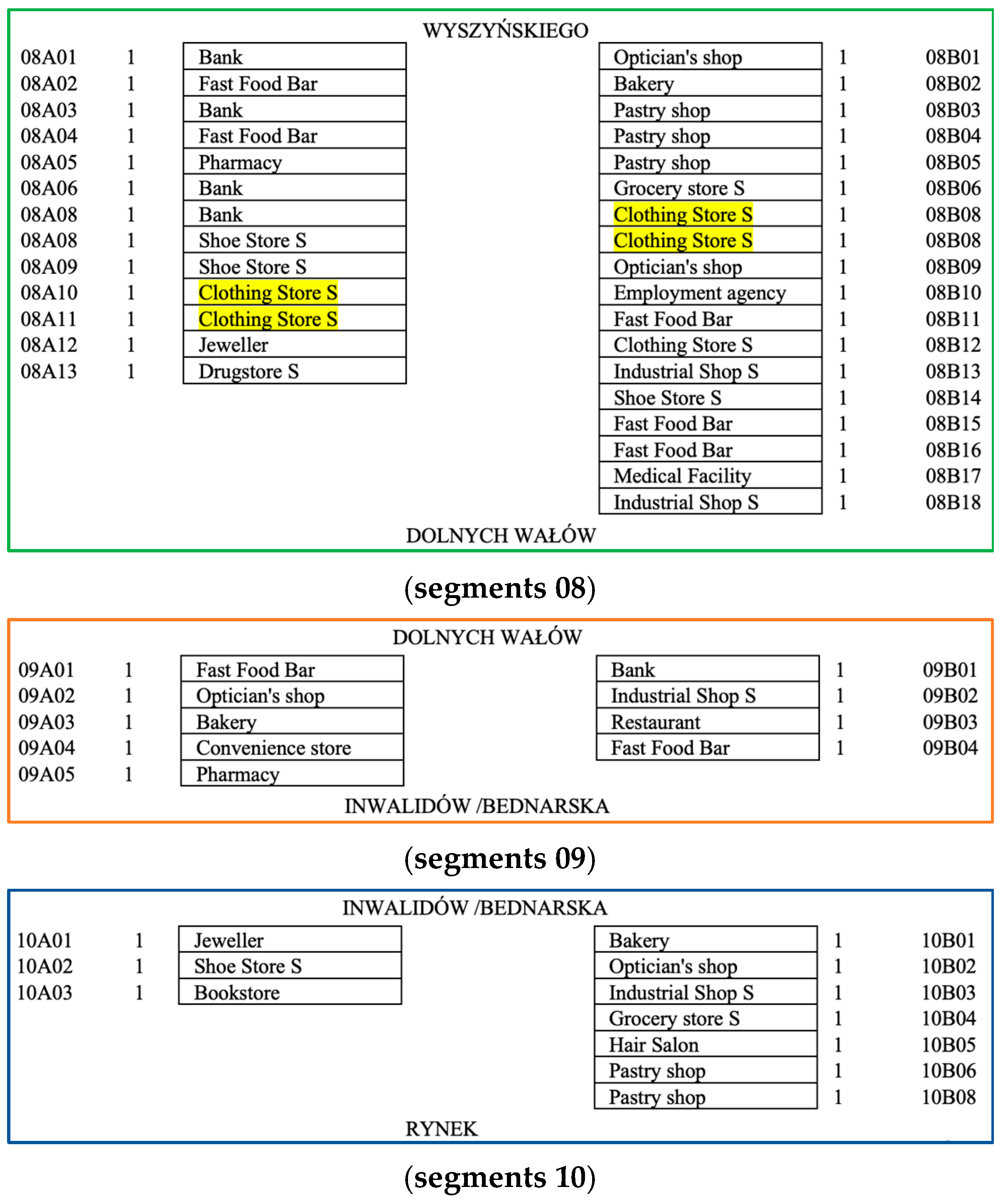 - the assessment of differences in symbiosis and synergy levels between adjacent segments of the main street.