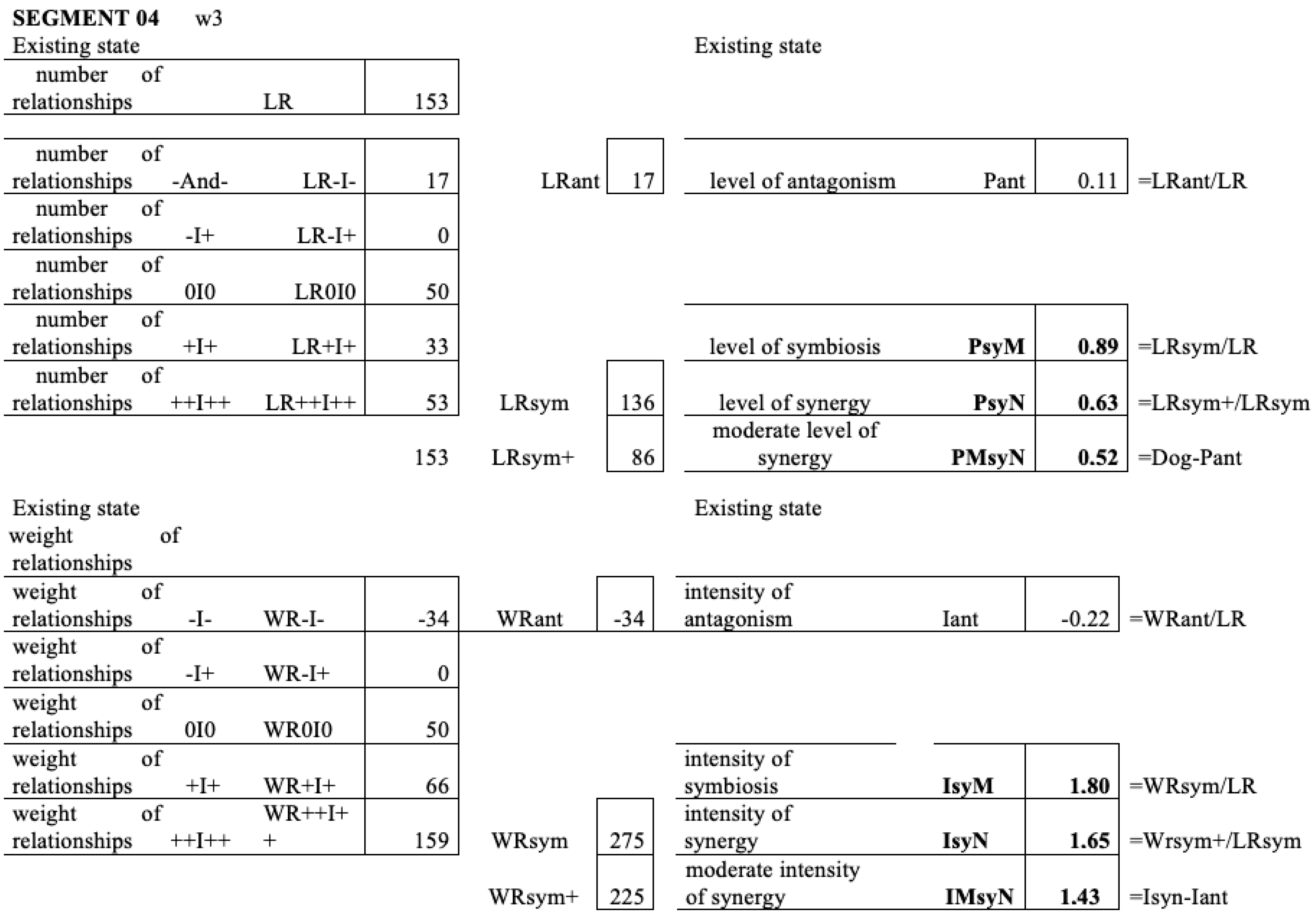 - the assessment of deficiencies in the levels of symbiosis and synergy in individual segments by indicating the magnitude of the gap to the ideal level,