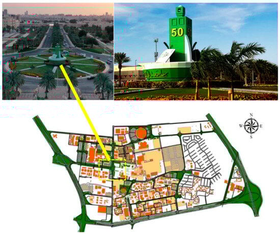 Location of the 50-Years Roundabout at King Abdulaziz University (KAU).