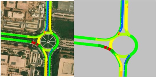 Roundabouts have emerged as a widespread type of intersection control across the globe because they have proven safety and efficiency advantages. The modern roundabout, characterized by yield-at-entry control and geometric design elements that reduce the speed of entering traffic, was developed in the mid-20th century to rectify issues with the preceding traffic circles. Unlike large, traditional rotaries, modern roundabouts reduce conflict points and simplify traffic flow by yielding the right-of-way to traffic already in the circle and requiring entering traffic to yield []. These elements result in dramatically fewer severe collisions—studies demonstrate that roundabouts can reduce fatal crashes by about 90% compared to traditional signalized intersections []. As a result, their implementation has accelerated; for example, the United States built its first modern roundabout in 1990 and now boasts thousands of roundabouts (over 9000 as of the latest estimates) []. Roundabouts are also praised for improving operational performance by minimizing delays of vehicles as well as queues through continuous low-speed flow []. These advantages have rendered roundabouts an attractive alternative for improving safety and level of service (LOS) at intersections [].