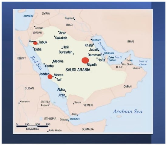The qualitative exploratory design was employed to gain a deep insight into the issues of urban sustainability from the perspectives of different stakeholders. The study was conducted in three large cities of Saudi Arabia: Riyadh, Jeddah, and Neom, which have different degrees of urban development and planning paradigms.