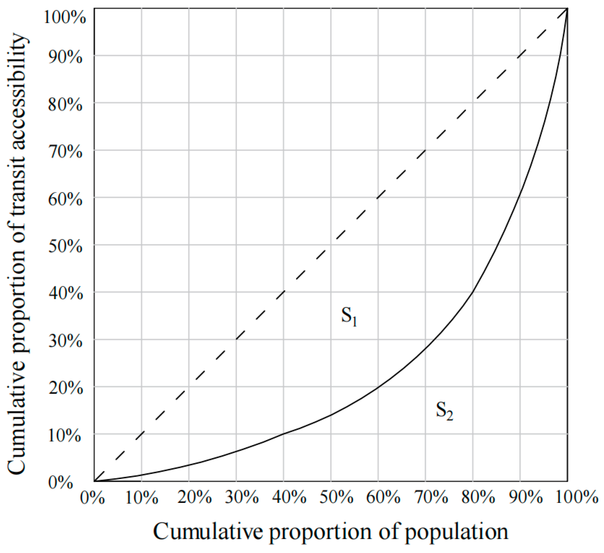 | This study | Multi | Revised Gini coefficient based on the Lorenz curve, which is constructed with the transit accessibility. | Objective | Yes | Yes |