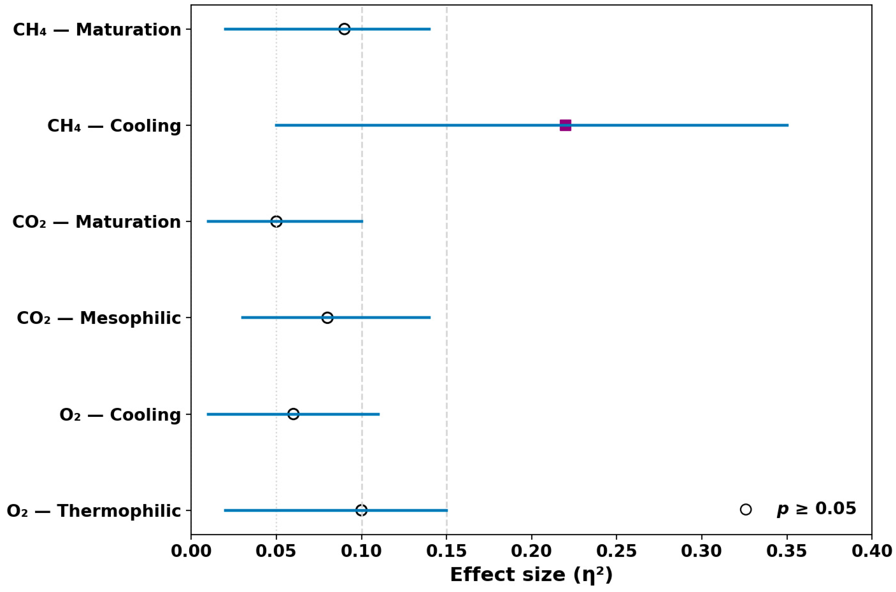 | CO2—Mesophilic | 0.87 | 0.38 | 0.03 | 0.00–0.09 |