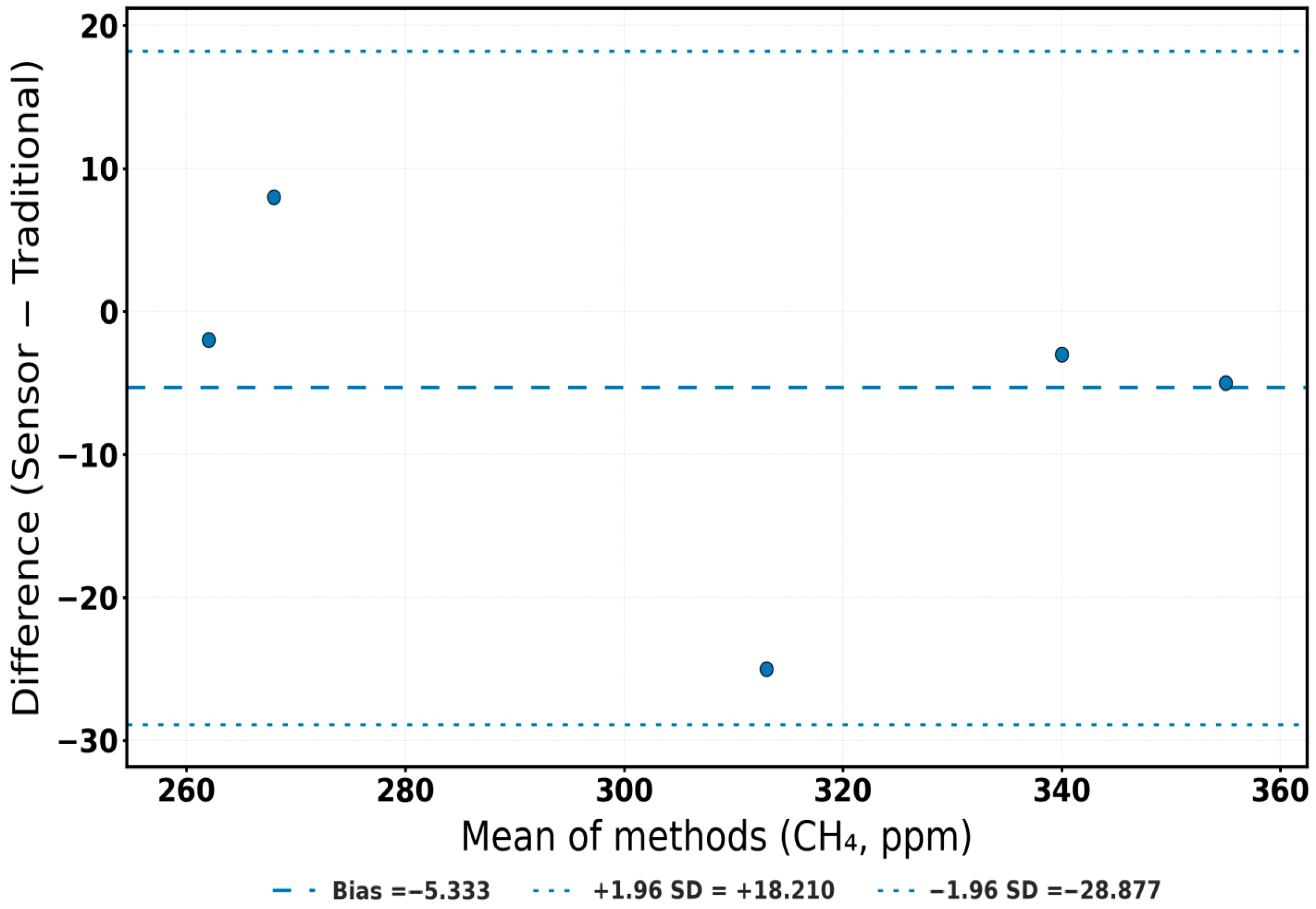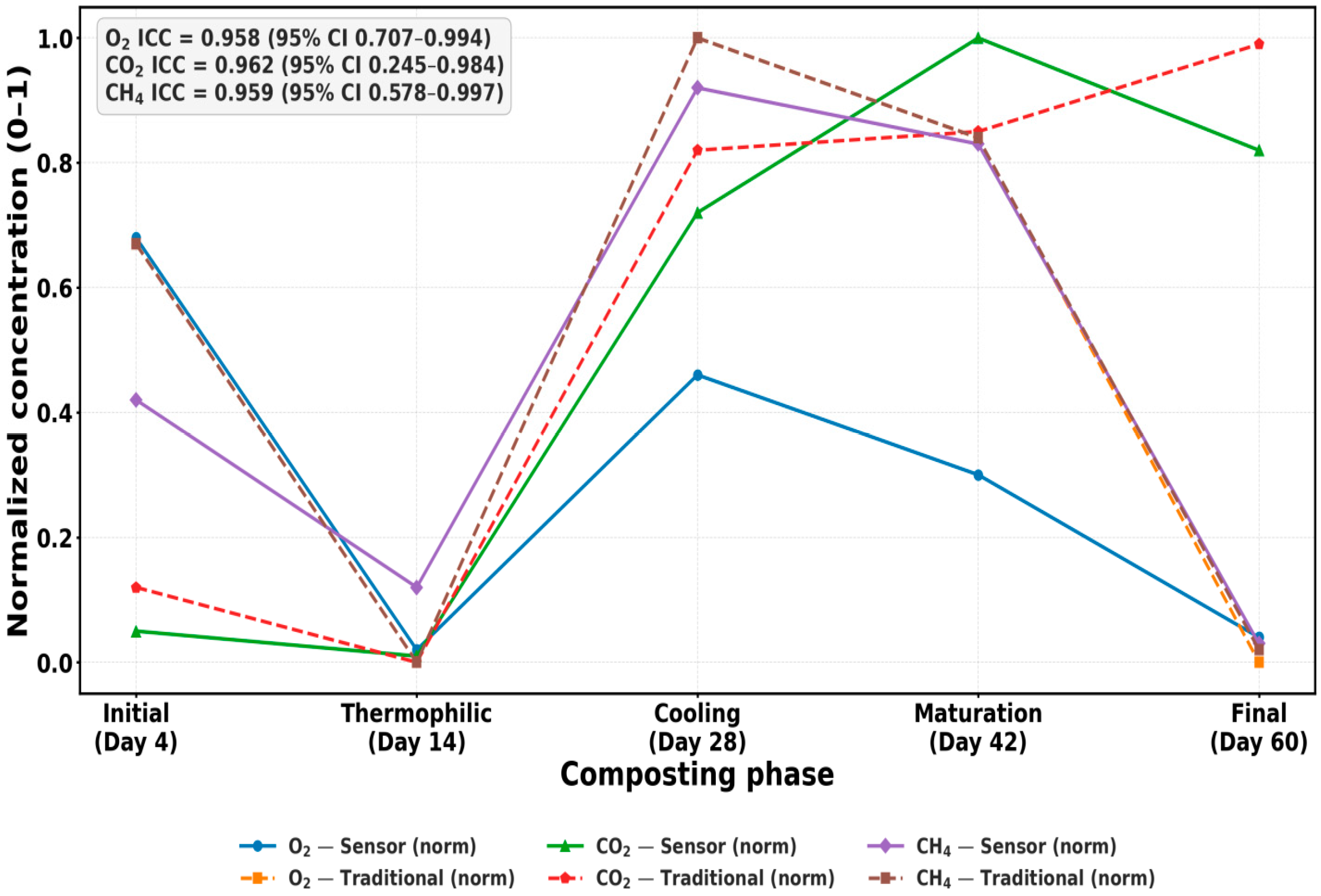 3.5. Agreement Analysis Validating Real-Time Compost Gas Monitoring