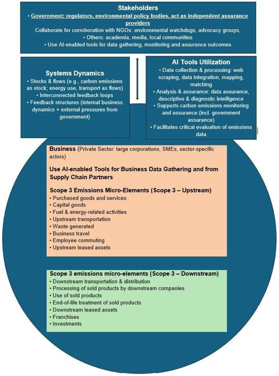 It is within this context that artificial intelligence (AI) has been promoted as one of the critical solutions to address weaknesses and gaps associated with sustainability reporting. Nevertheless, associated risks have been identified, such as use of AI for greenwashing purposes [33]. AI is also alleged to be overhyped as a way to support global improvements in sustainability reporting [34]. We further expand on this point by approaching Scope 3 emissions reporting and assurance from the frame of reference of systems thinking and by critically analyzing the limitations of AI (based on its current state) as a facilitator of better-quality Scope 3 emissions reporting. This critical analysis of AI utilization is presented later in the article.