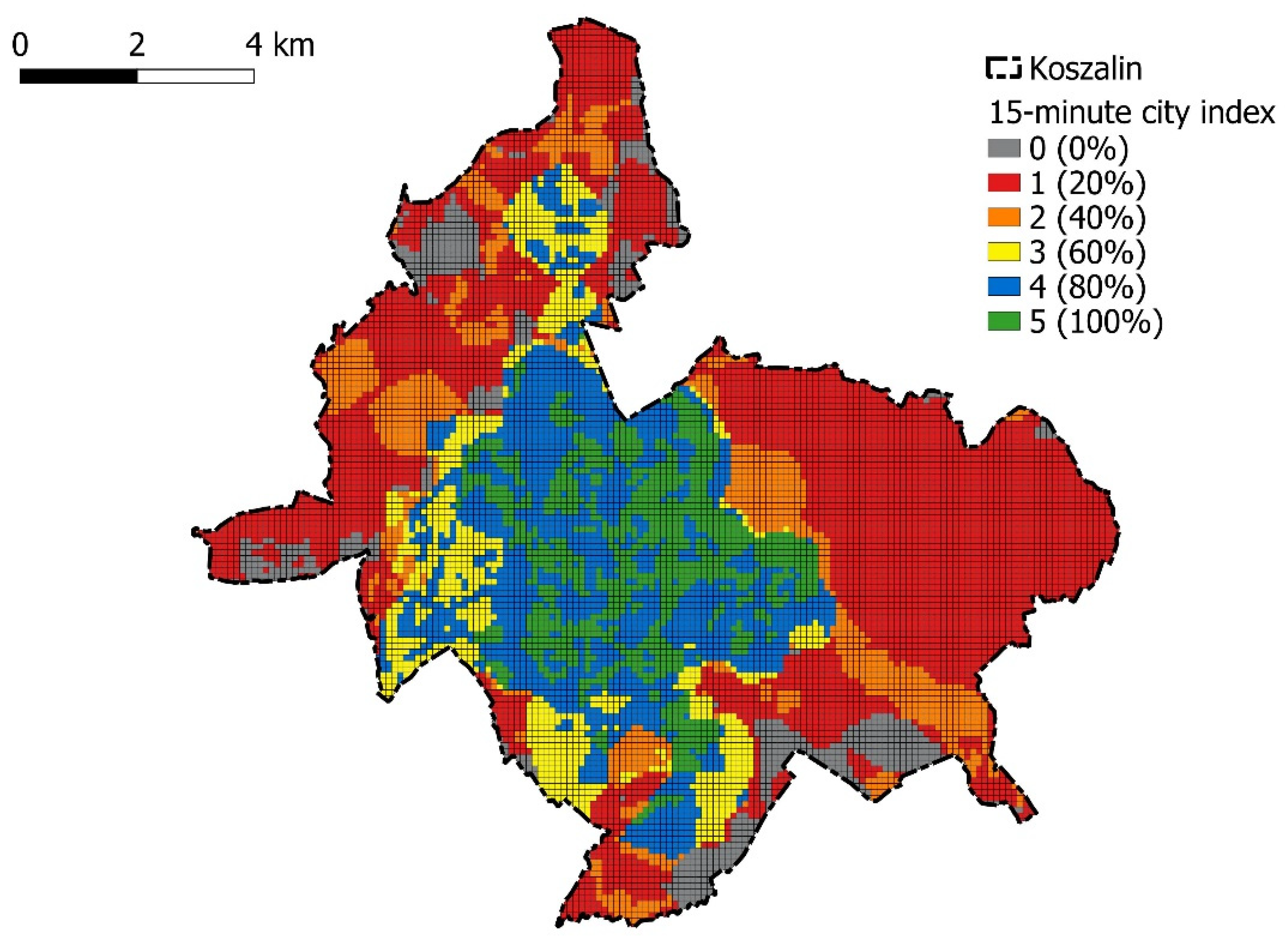 RQ4: To what extent does Koszalin’s functional and spatial structure support the implementation of the 15 min city concept, and which areas require planning intervention?