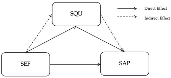 Mediation pathway design for SEF, SQU, and SAP. Indicator: SEF: Service Efficiency; SQU: Service Quality; SAP: System and Price.