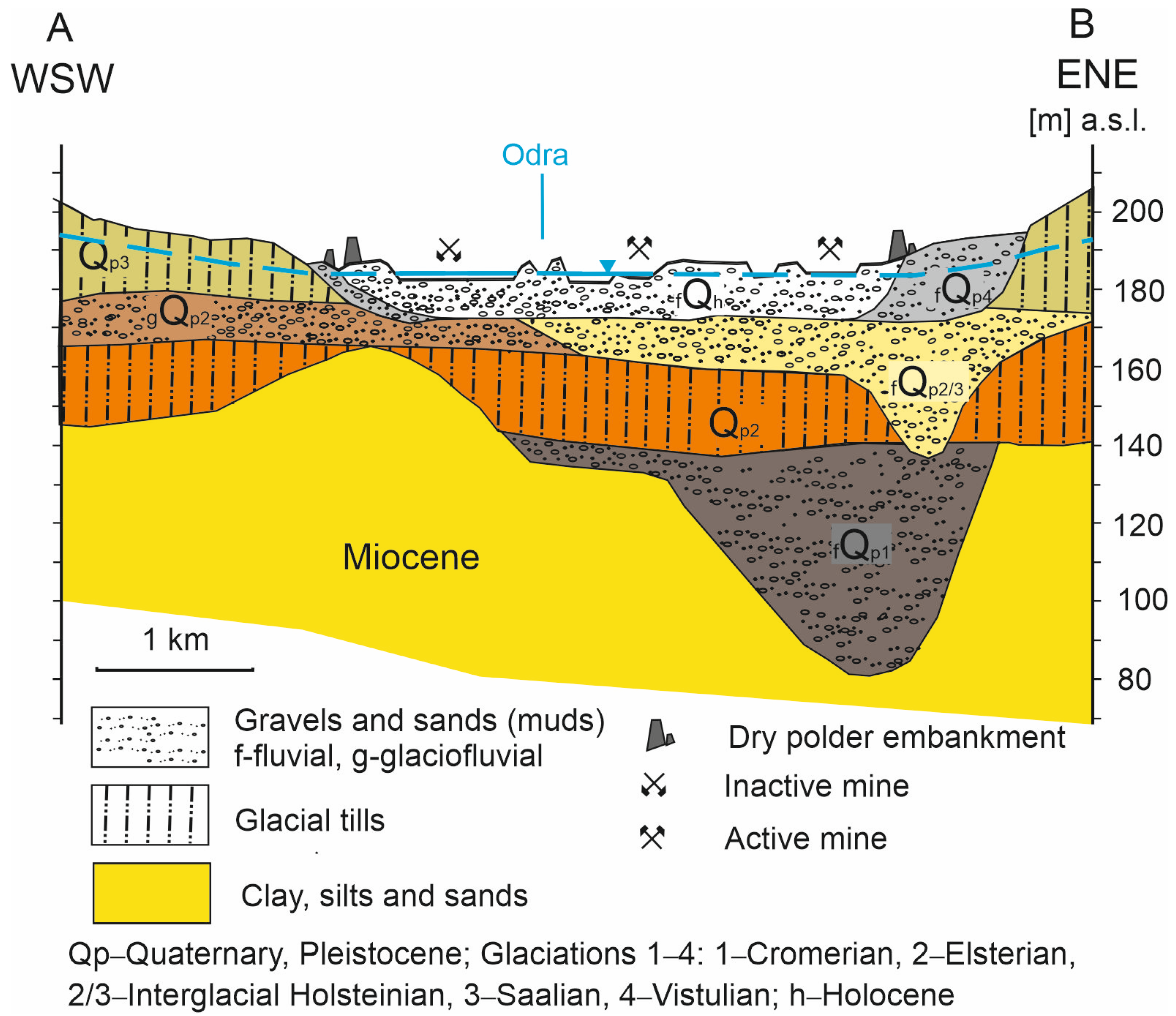 27]. The floodplain of the Upper Odra River was transformed even more than the channel because of extensive open pit mining.