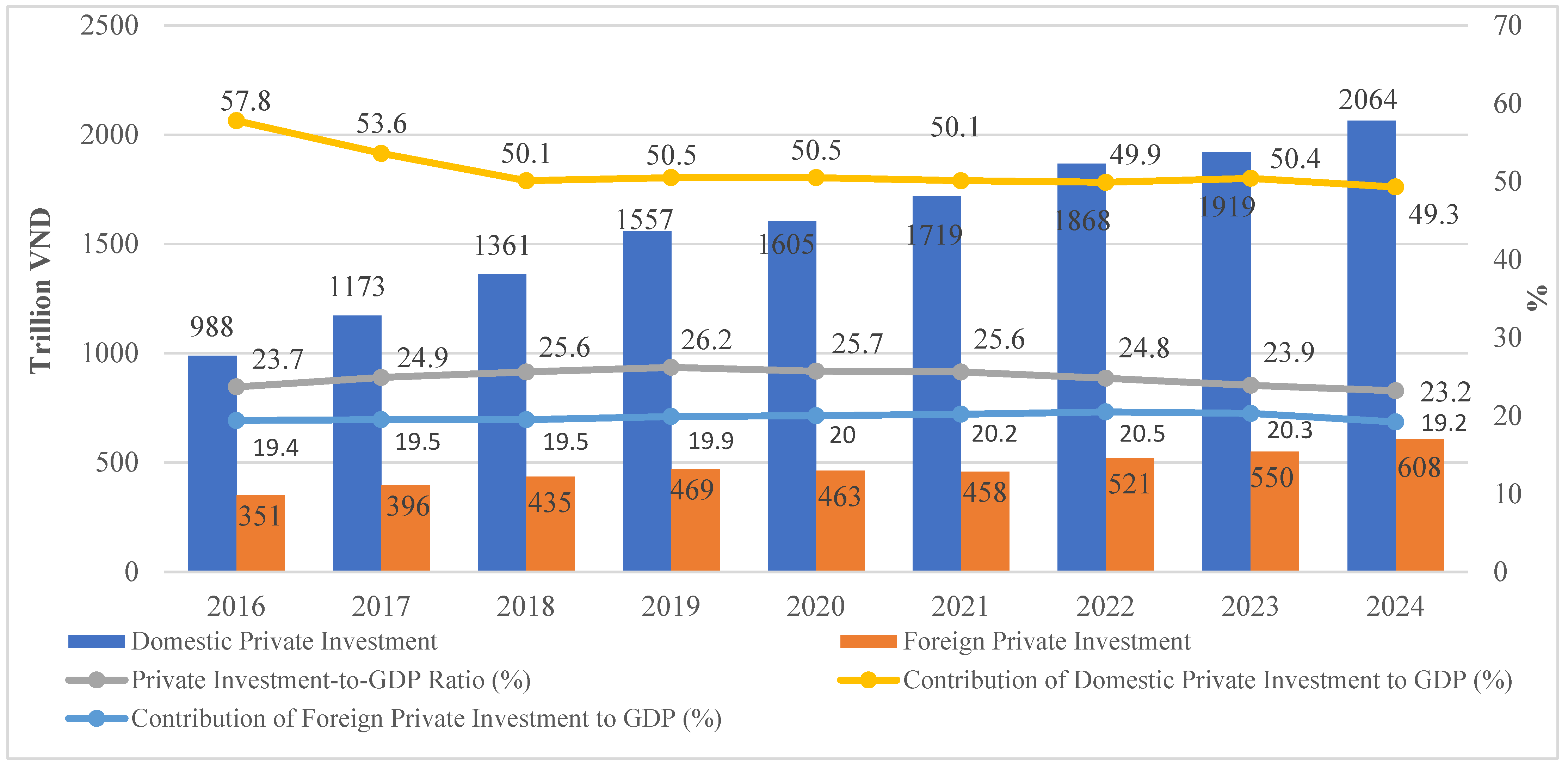 - Thai Nguyen University of Economics and Business Administration (TUEBA); An, D.T. Unlocking the Secrets: Private Investments and the Remarkable Evolution of Vietnam’s Economy. High. Sch. Econ. Econ. J. 2024, 28, 159–183. [Google Scholar] [CrossRef]