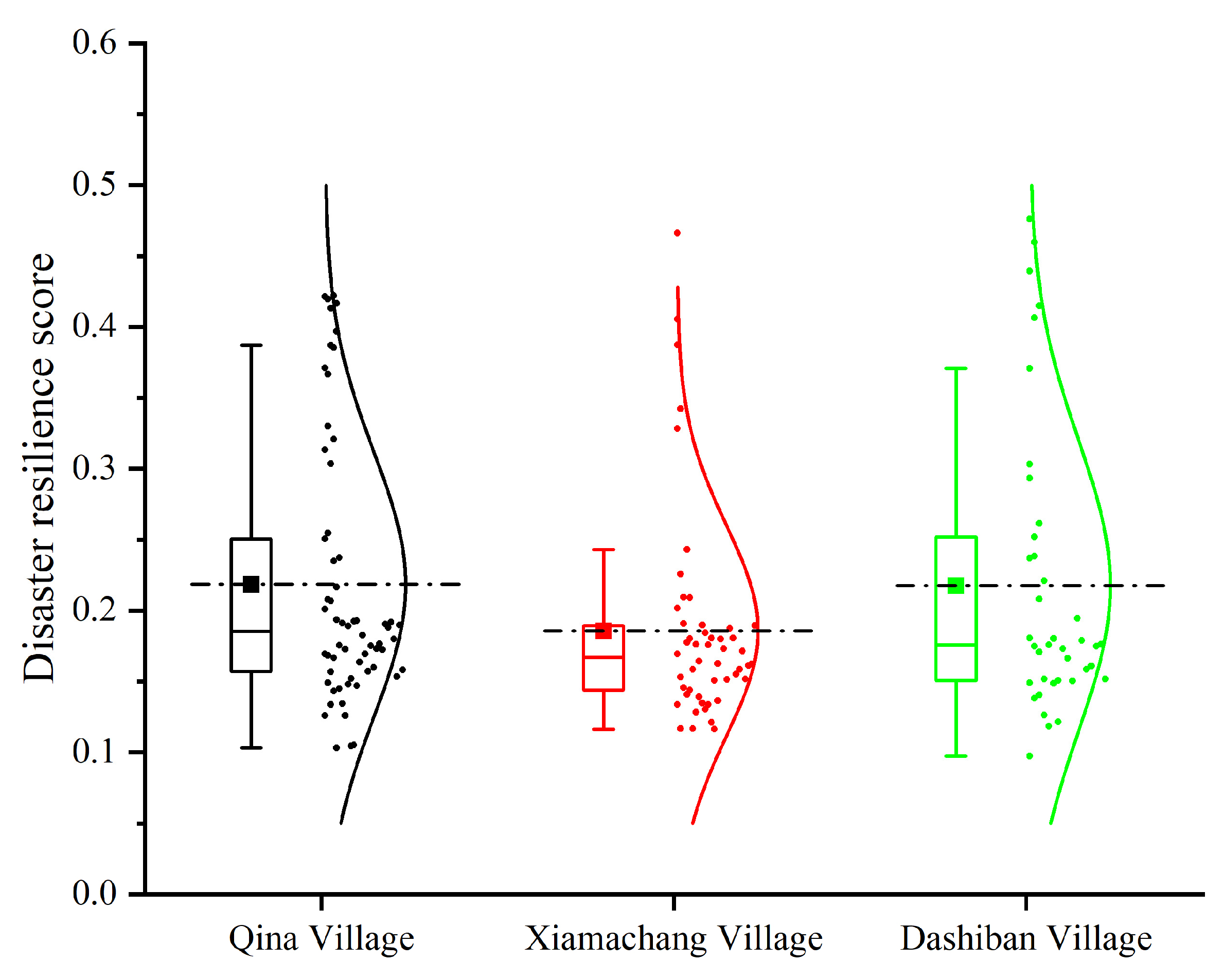 Figure 4. Typical village household disaster resilience score box plot.