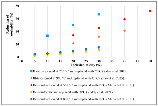 Clay-based SCMs offer promising sustainability benefits; however, their practical implementation encounters various challenges. A primary challenge lies in the variability of mineral composition, as natural clays exhibit considerable differences in reactive minerals such as kaolinite, illite, and montmorillonite. This variability influences pozzolanic reactivity and complicates quality control processes, primarily when clays originate from diverse geological sources [36]. Furthermore, the complexity of activation presents a significant challenge: clays generally require thermal treatment (calcination) at precisely controlled temperatures—typically between 600 and 950 °C—to achieve proper reactivity. Incorrect calcination, whether too high or too low, can negatively impact performance. Moreover, the energy-intensive nature of this process raises concerns about sustainability [37,38]. Furthermore, impurities such as quartz, carbonates, or organic matter can disrupt hydration reactions and diminish the effectiveness of the SCM process [39]. These factors underscore the need for rigorous characterisation and tailored activation protocols when incorporating clay into cementitious systems.
