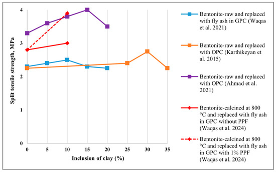 - Waqas, R.M.; Zaman, S.; Alkharisi, M.K.; Butt, F.; Alsuhaibani, E. Influence of Bentonite and Polypropylene Fibers on Geopolymer Concrete. Sustainability 2024, 16, 789. [Google Scholar] [CrossRef]