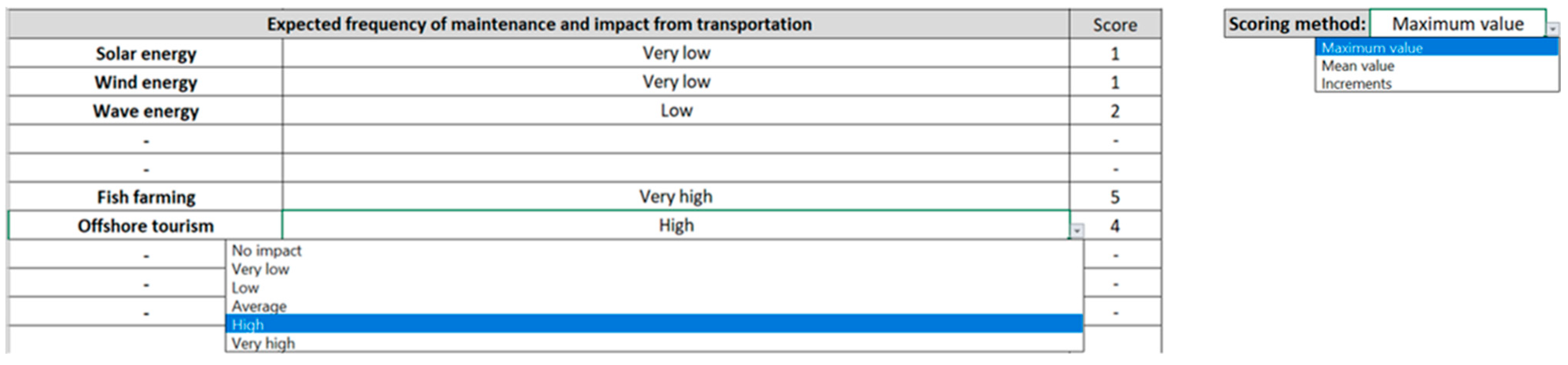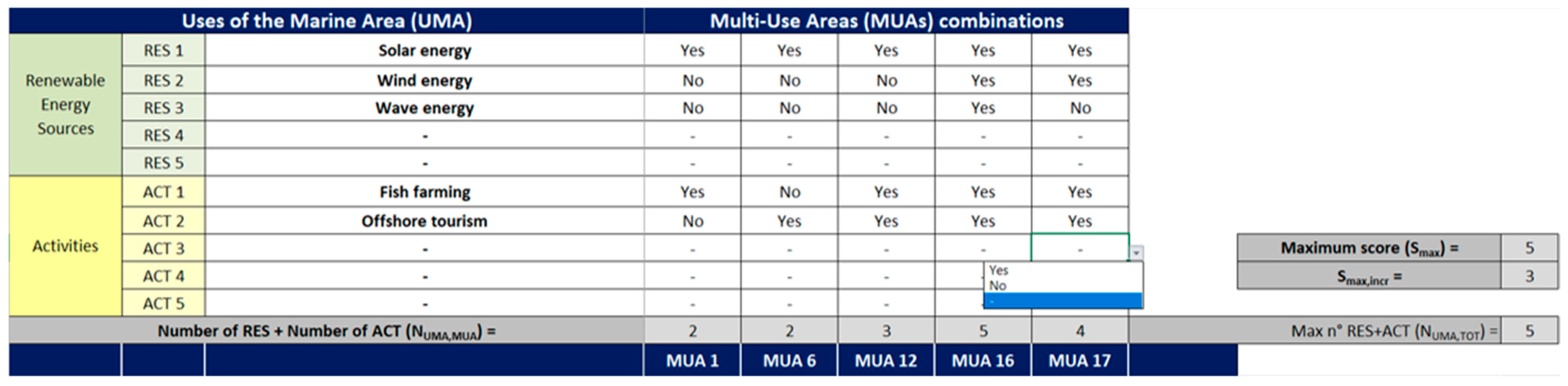 - It is fully general: all the RES and activities traditionally considered for the development of offshore MUA are already implemented in the tool with a corresponding set of specific criteria. However, it also allows users to add other RES and additional activities as desired, thus enabling a wide variety of combinations to be compared.