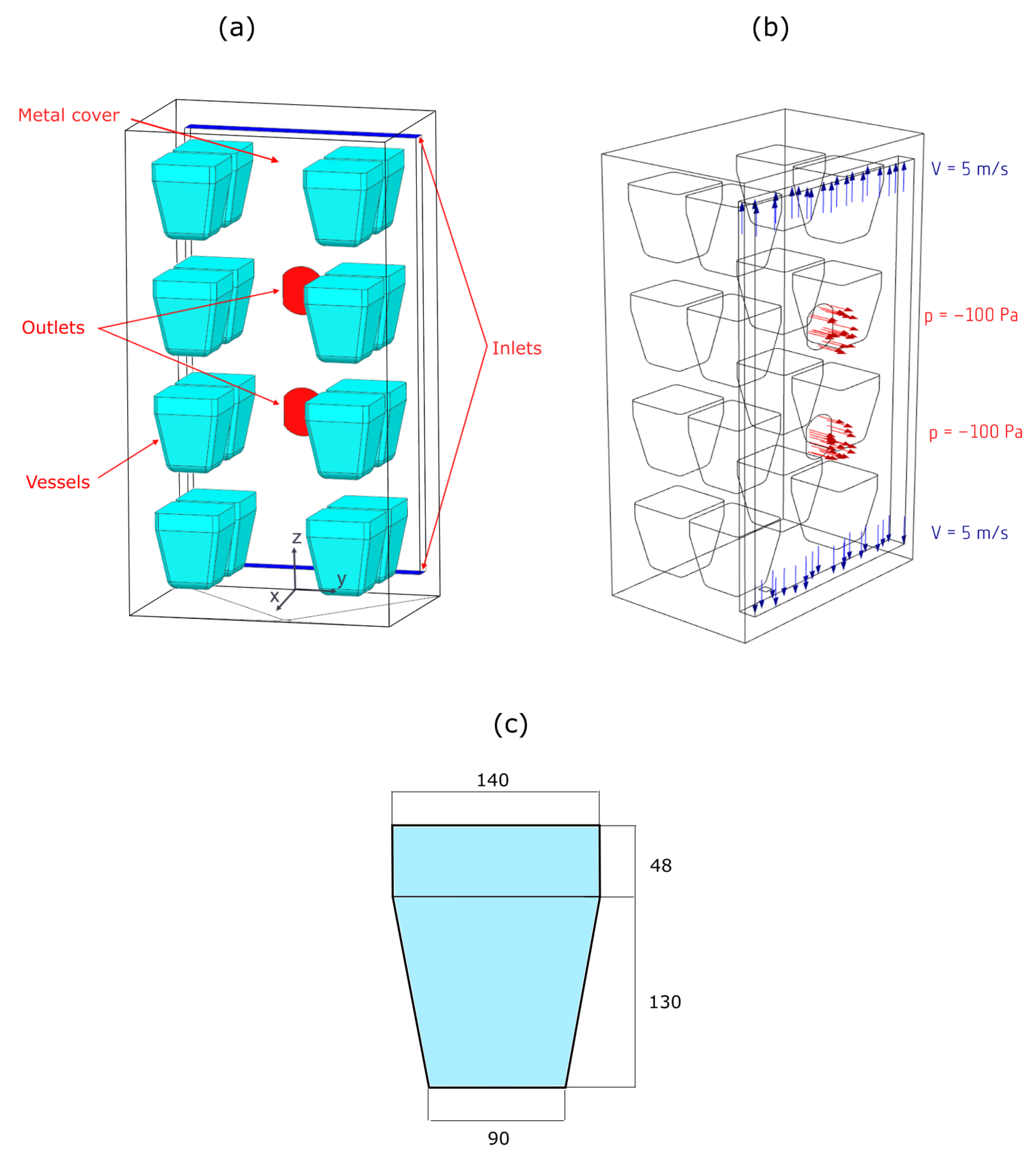15], used CFD to derive velocity fields in chambers loaded with WVP test vessels, without considering moisture transport, emission, or removal.