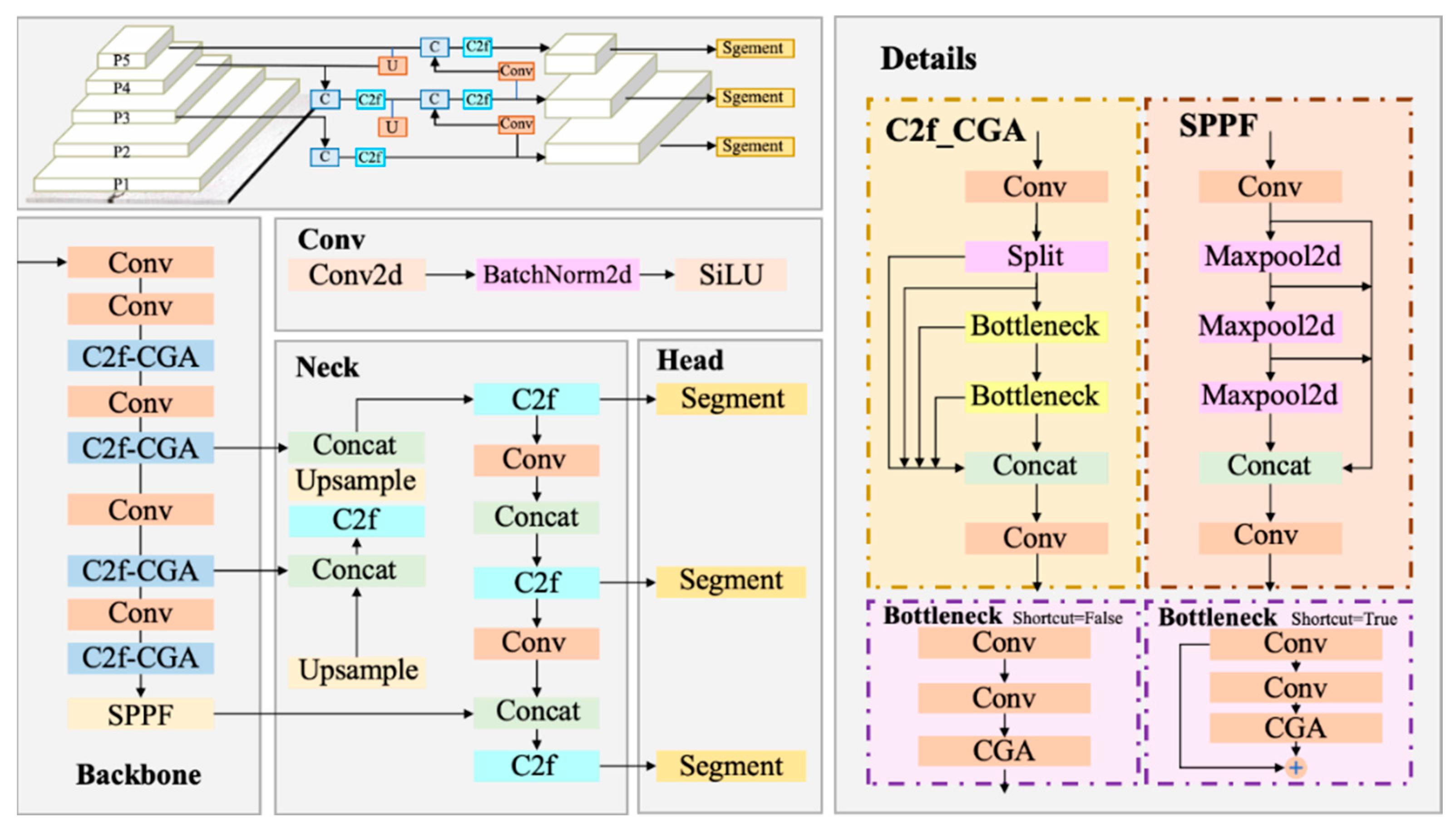 2.1.1. Crack Segmentation Based on Improved YOLOv8-CGA Method