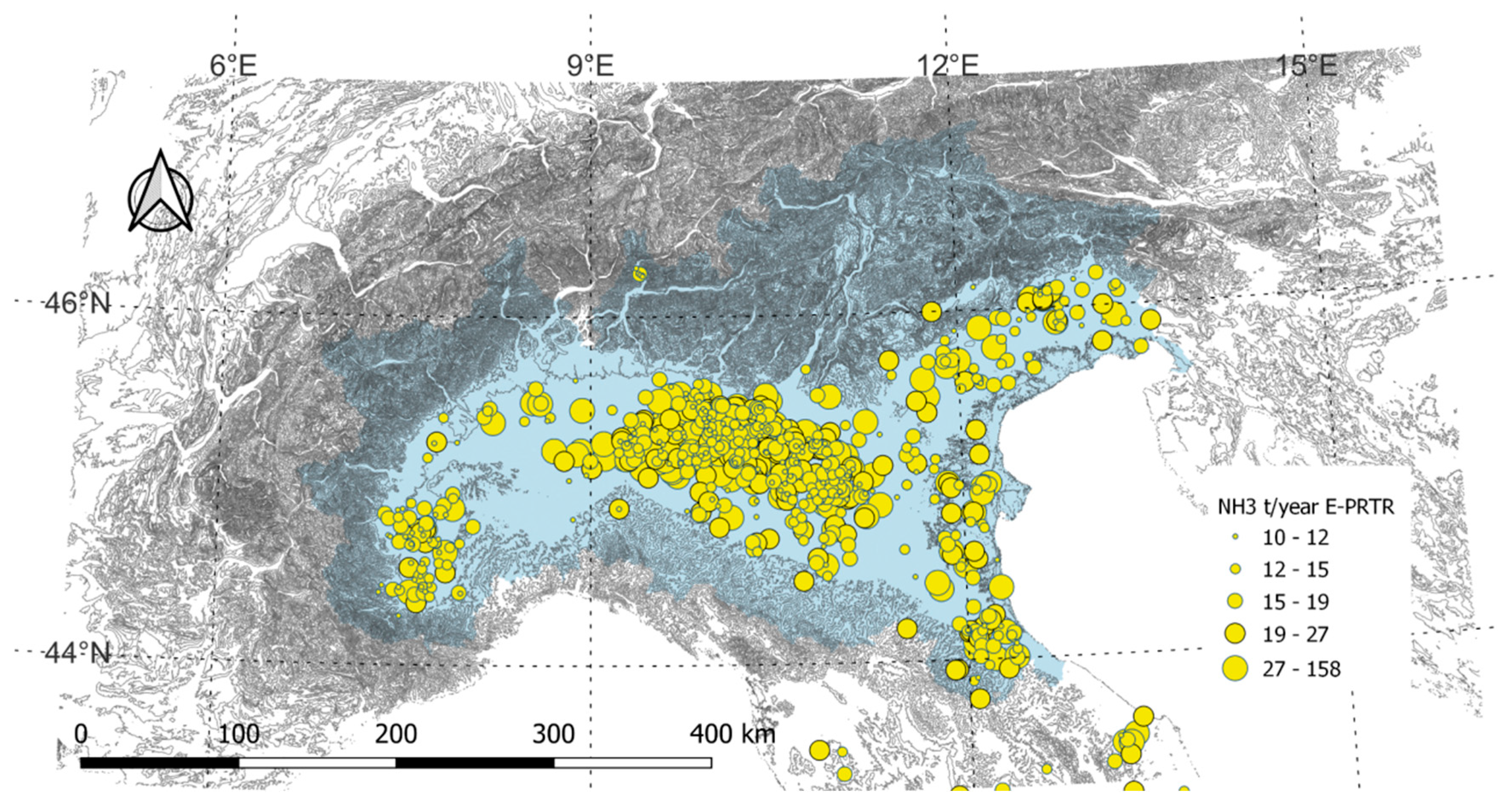 - Marongiu, A.; Colombo, L.; Collalto, A.G. Dynamic emission inventory of ammonia in northern Italy by machine learning. Air Qual. Atmos. Health 2025. [Google Scholar] [CrossRef]