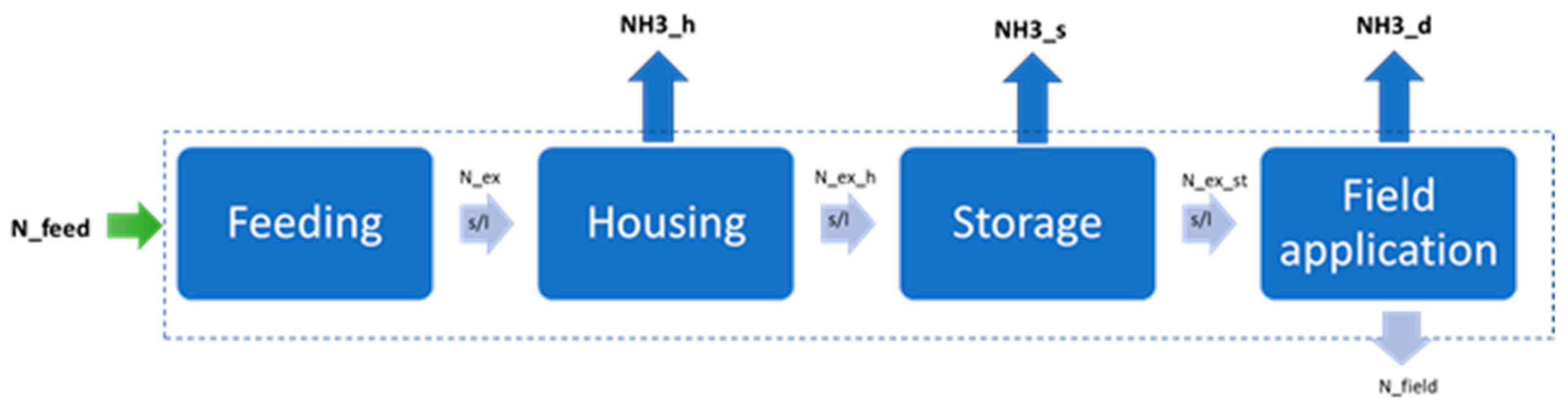 2.3. Modeling the Nitrogen Fluxes from Livestock