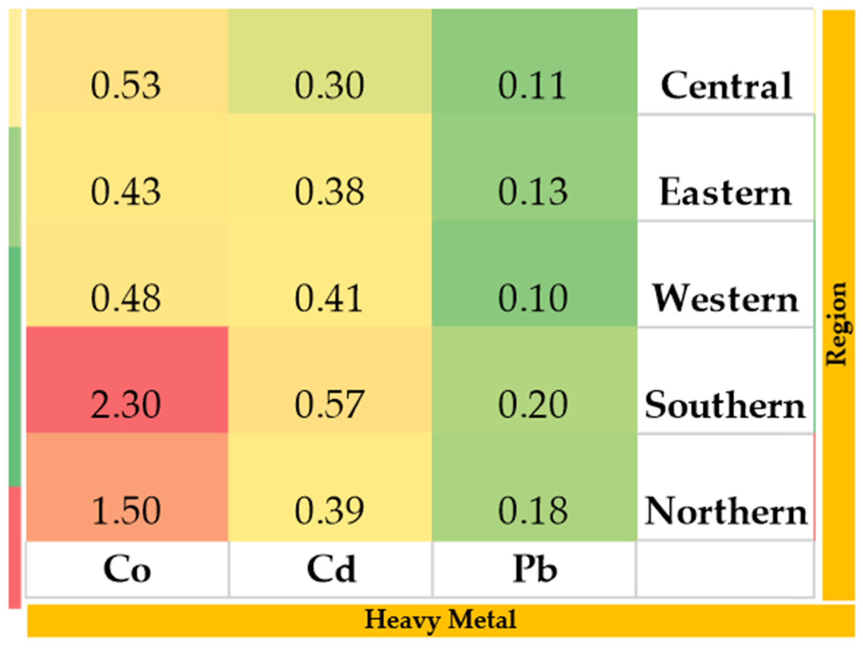 | Northern | Cd | 0.022 | 0.025 | 0.024 | 0.013 | 0.981 |