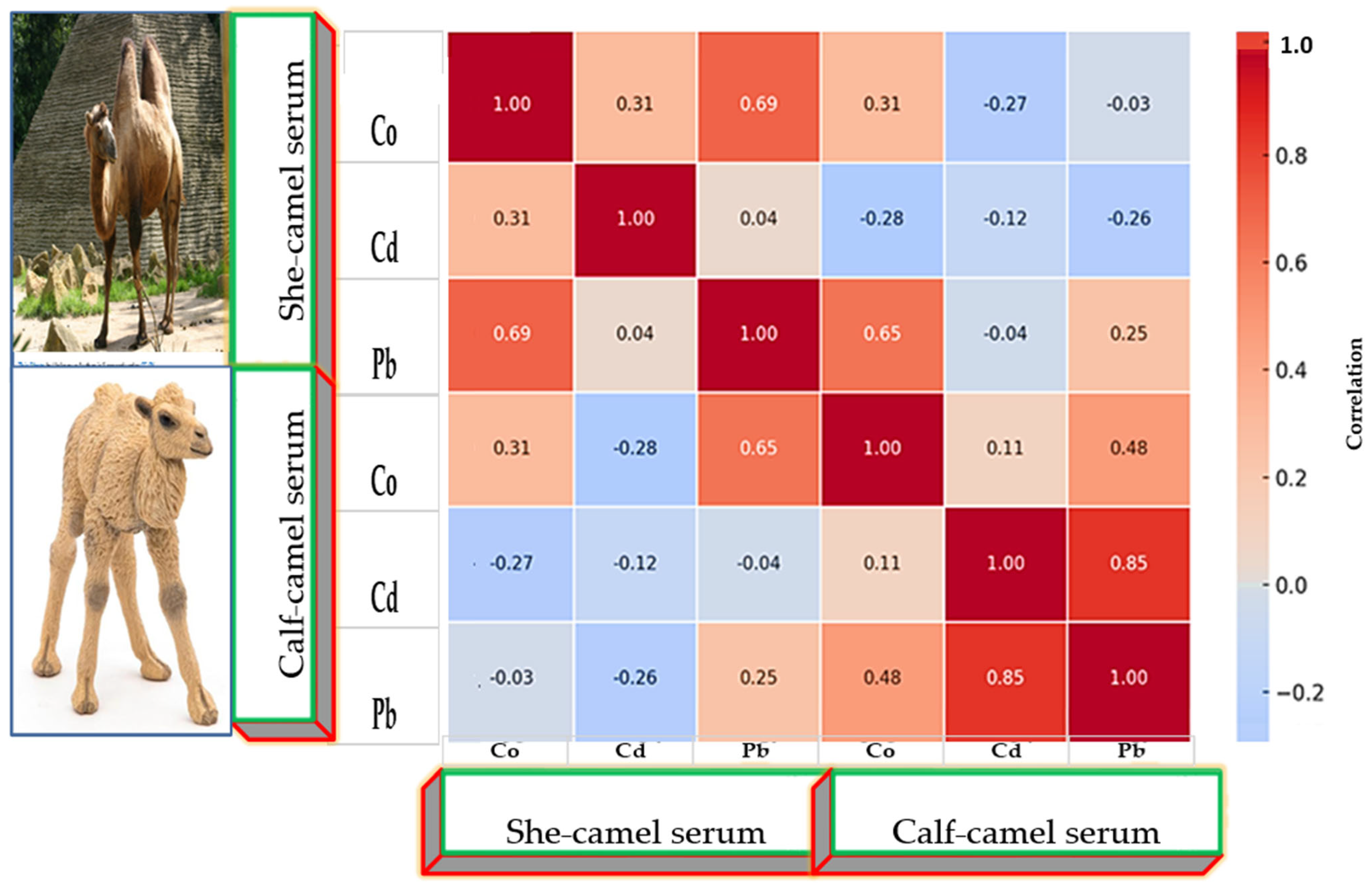 Abdelrahman, M.M.; Alobre, M.M.; Qaid, M.M.; Al-Badwi, M.A.; Matar, A.M.; Aboragah, A.A.; Amran, R.A.; Aljumaah, R.S. Regional and Seasonal Dynamics of Heavy Metal Accumulation in Saudi Dromedary Camel Serum and Milk as Bioindicators of Environmental Quality. Sustainability 2025, 17, 10205. https://doi.org/10.3390/su172210205