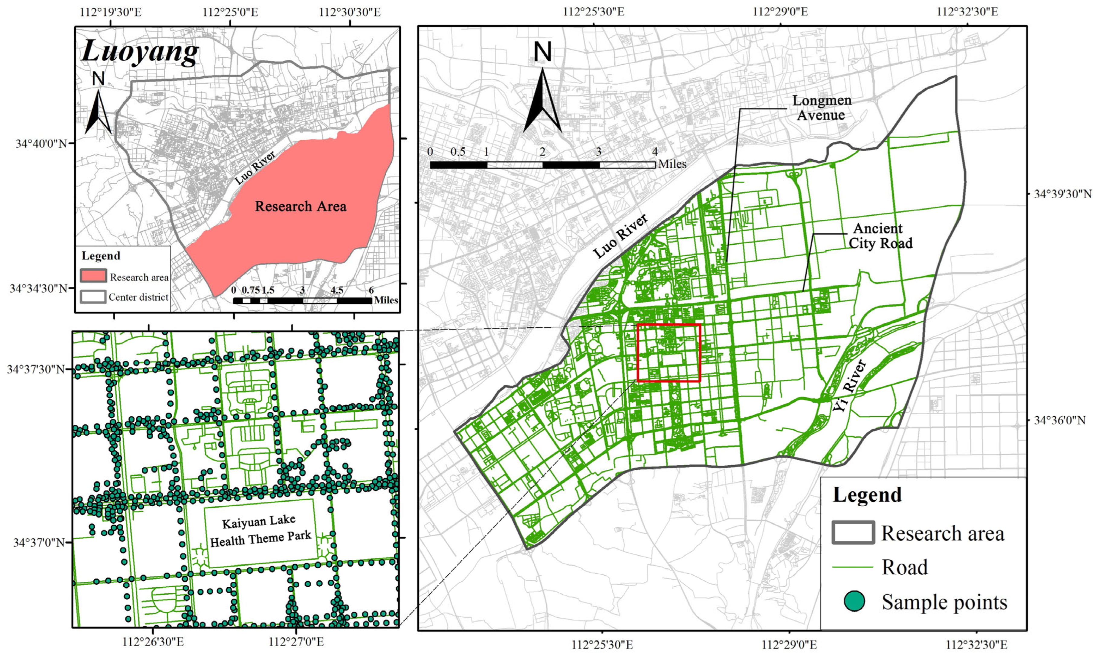- Huang, Z.; Luo, S.; Cai, Y.; Lu, Z. Integrating Accessibility and Green View Index for Human-scale Street Greening Initiatives: A Case Study of Chengdu’s Third Ring Road. J. Resour. Ecol. 2024, 16, 356–367. [Google Scholar]