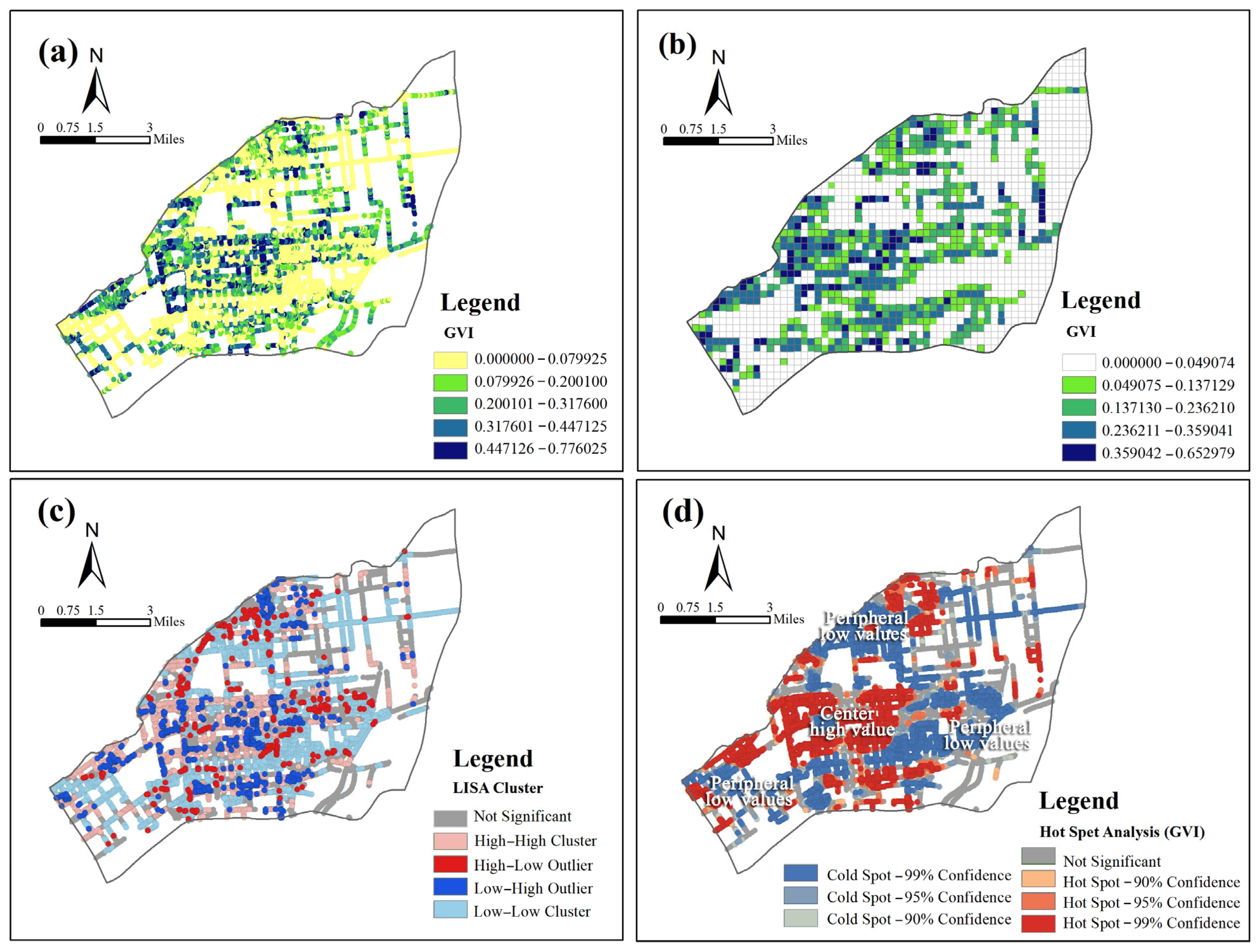 3.1.2. Spatial Heterogeneity of GVI