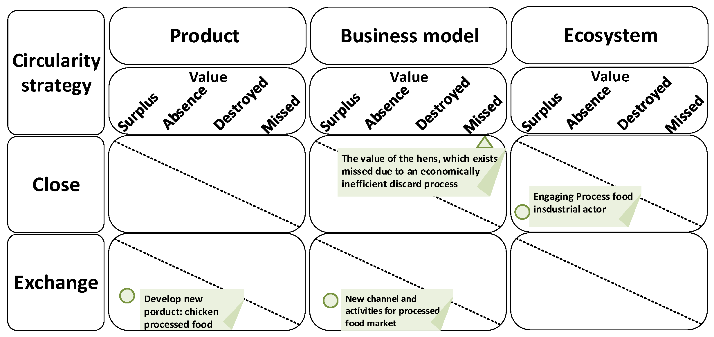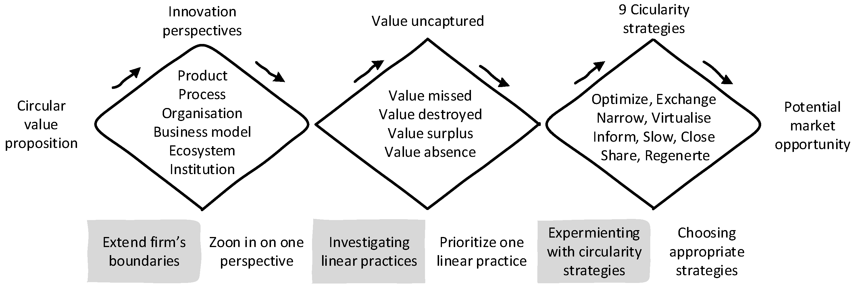 | Circularity Strategies | Optimize, Exchange, Narrow, Virtualize, Inform, Slow Share, Close, and Regenerate. | How to transform them? |