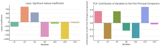 - A correlation analysis of the dependence of indicators was carried out, and significant indicators were determined based on the PCA, AIC, and Lasso methods;