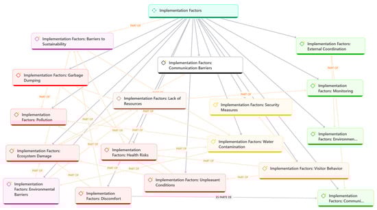 These challenges are further exacerbated by inappropriate visitor behaviors, including improper waste disposal, unregulated space use, and noncompliance with basic rules of coexistence. The resulting network map revealed a hierarchical, multi-causal structure, with operational and institutional factors functioning as central nodes that condition the performance of the other dimensions.
