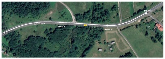 Two sections of road (540 m and 320 m long) with frequent road surface and horizontal marking defects were selected for the experimental research. Both road sections have a slight curve.