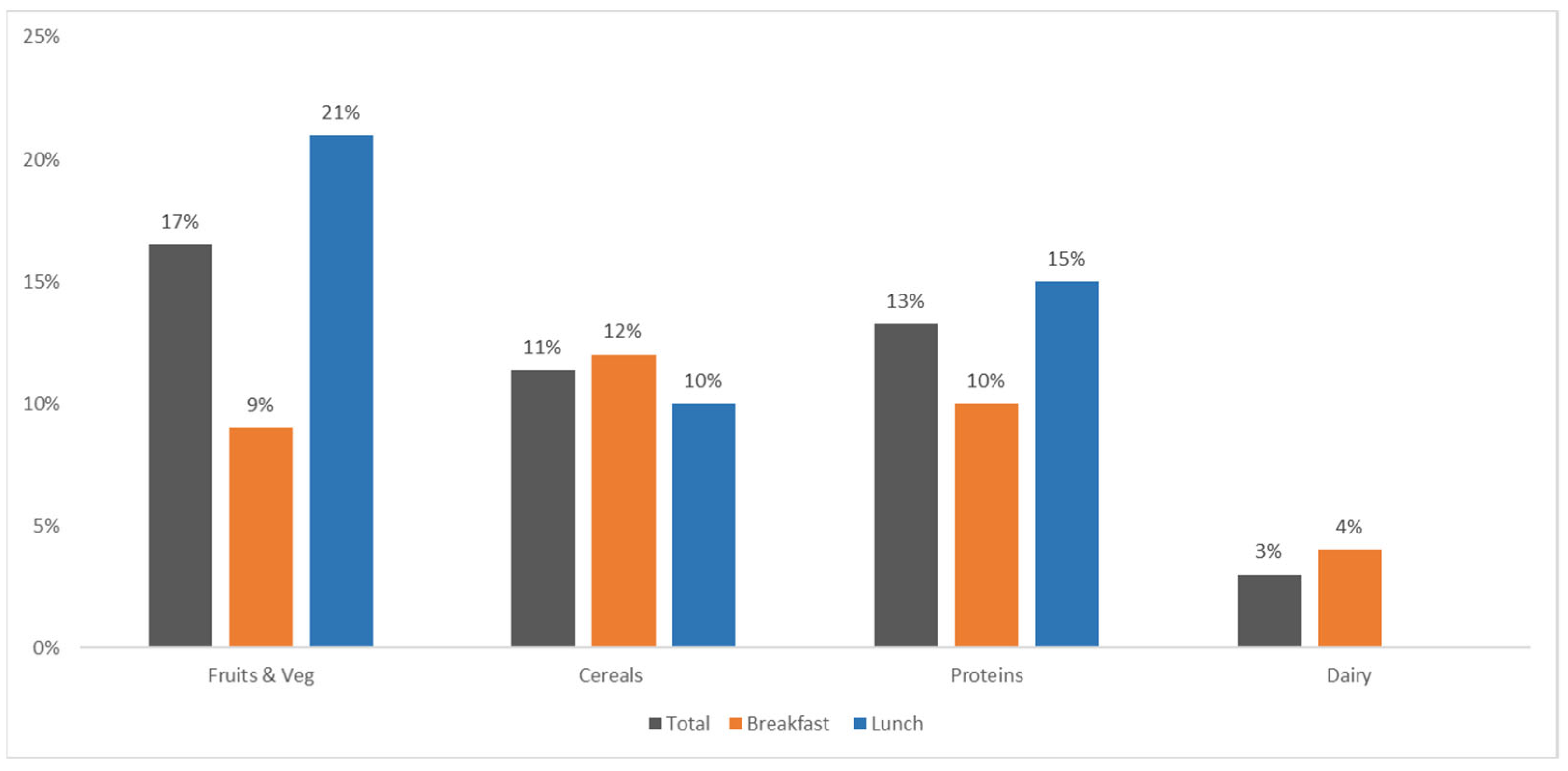 | 3–5 yrs | Lunch | 0% | Beans | 3–5 yrs | Lunch | 19% | Tuna with vegetables | ||