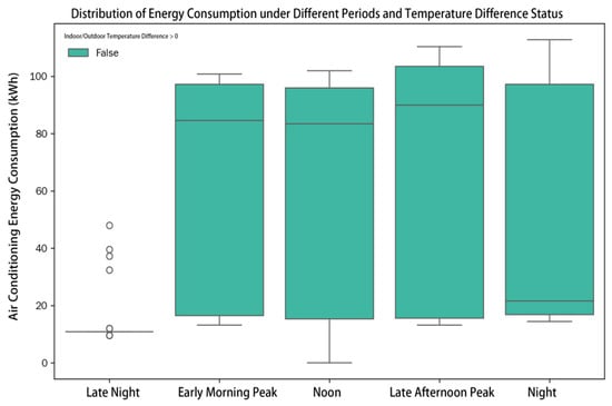In building energy consumption analysis, although the direct linear correlation between indoor and outdoor temperatures and energy consumption is relatively weak (Figure 3), in-depth analysis reveals that environmental factors exert a significant non-linear combined influence on energy consumption. Figure 4 demonstrates that within the same temperature range, varying humidity levels lead to substantial differences in energy consumption, revealing a coupled temperature–humidity effect. Figure 5 further indicates a pronounced “lag” and “non-linear” relationship between air-conditioning energy consumption and outdoor temperature. Only when the outdoor temperature exceeds a certain threshold does air-conditioning energy consumption begin to rise significantly, and this increase is not linear. This phenomenon may be related to the delayed effect of indoor and outdoor temperature changes. In practical building environments, indoor temperatures do not adjust instantaneously to outdoor temperature changes. This delay arises from the combined effects of building thermal inertia, wall thermal transfer characteristics, and the response time of air-conditioning systems (currently the primary energy-consuming systems). Consequently, using only indoor and outdoor temperatures as model inputs may fail to accurately reflect the dynamic heat exchange processes between building interiors and exteriors or patterns in energy consumption variation.