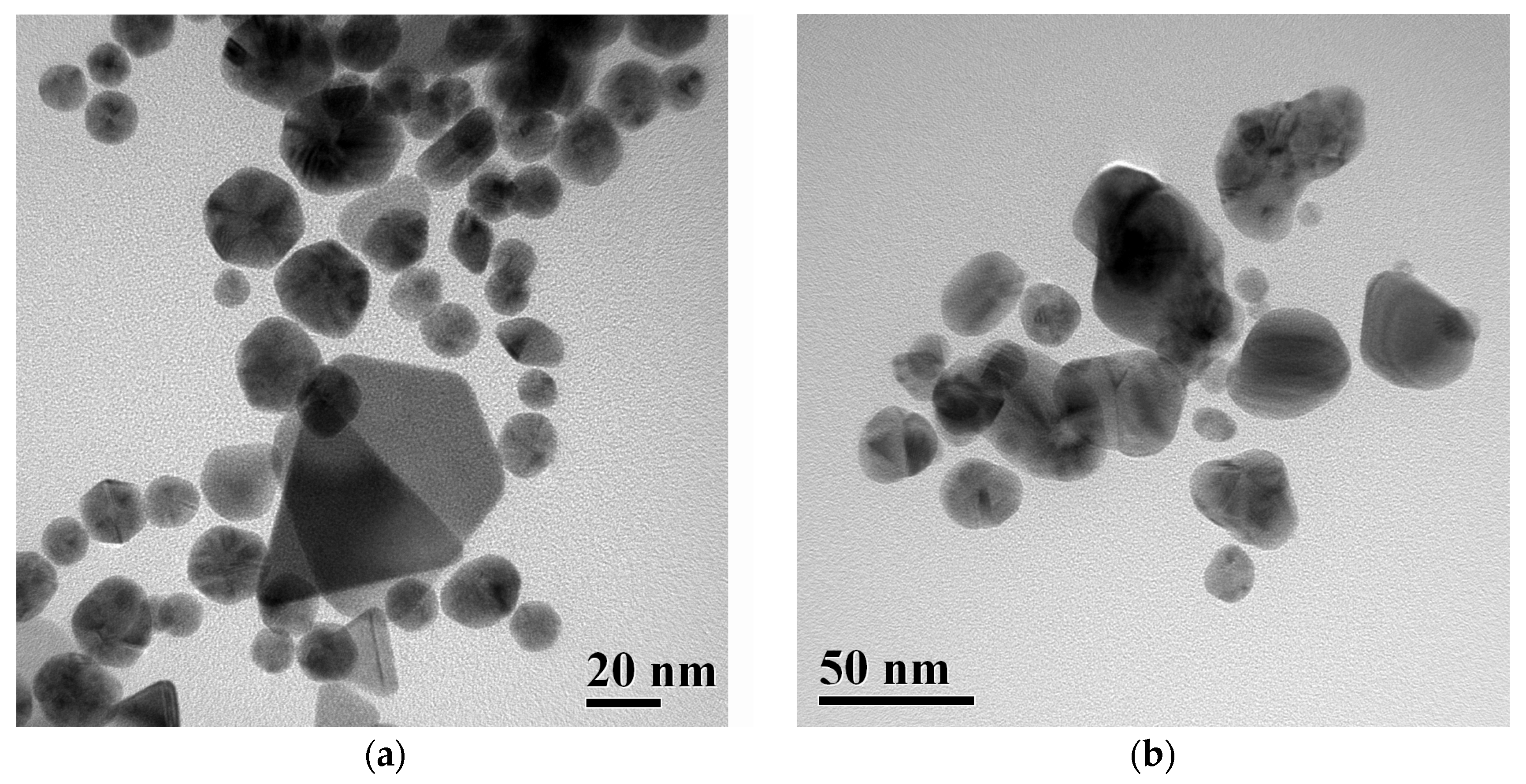3.1. Properties of Phytosynthesized Silver and Gold Nanoparticles