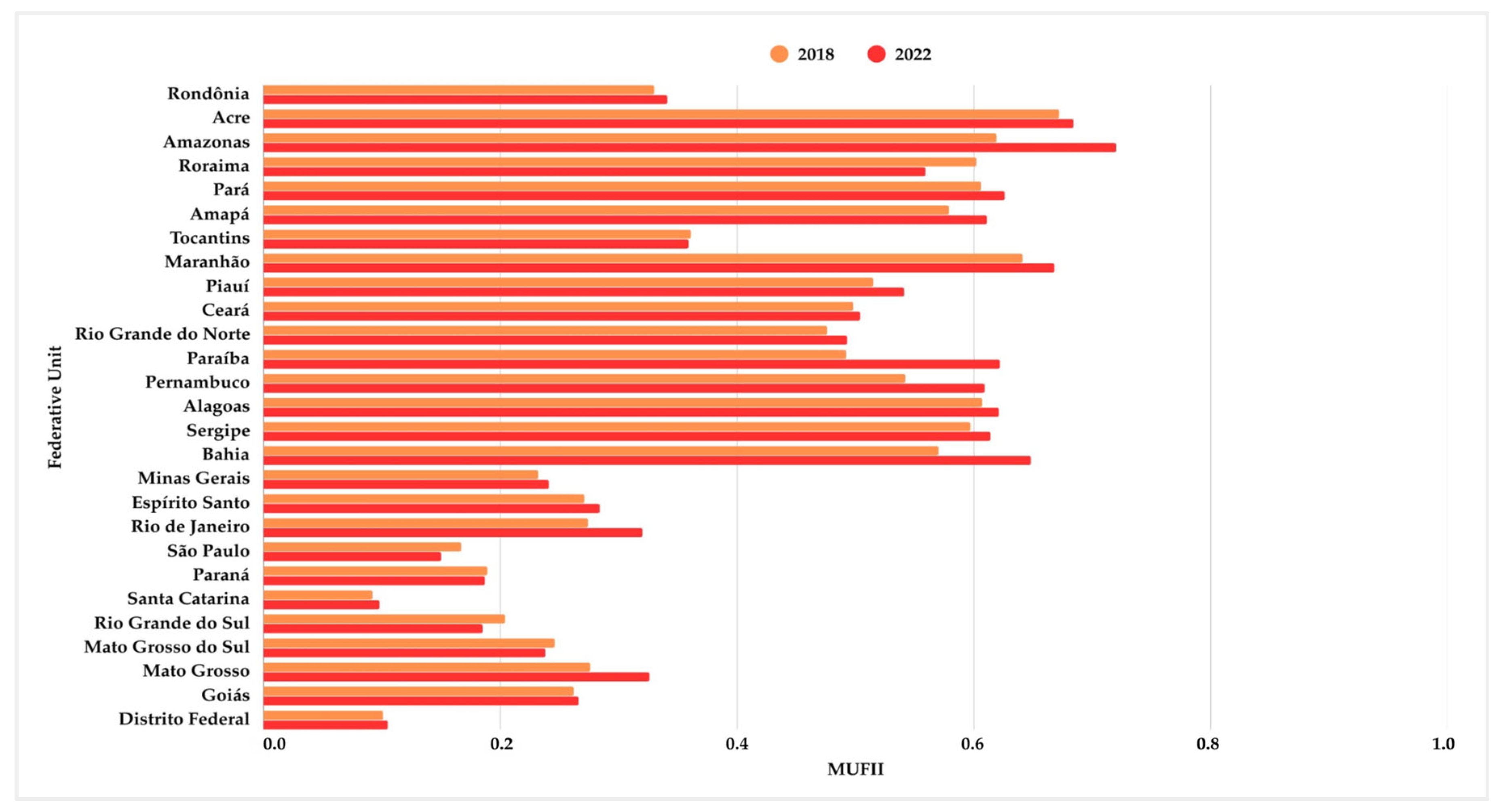 Chicago/Turabian StyleMoura, Lucas de Almeida, Eduardo De Carli, Carolina Ribeiro Xavier, and Dirce Maria Lobo Marchioni. 2025. "A Multidimensional Index to Quantify Food Insecurity in Brazil (MUFII): An Approach Based on Sustainable Development Indicators" Sustainability 17, no. 22: 10234. https://doi.org/10.3390/su172210234
