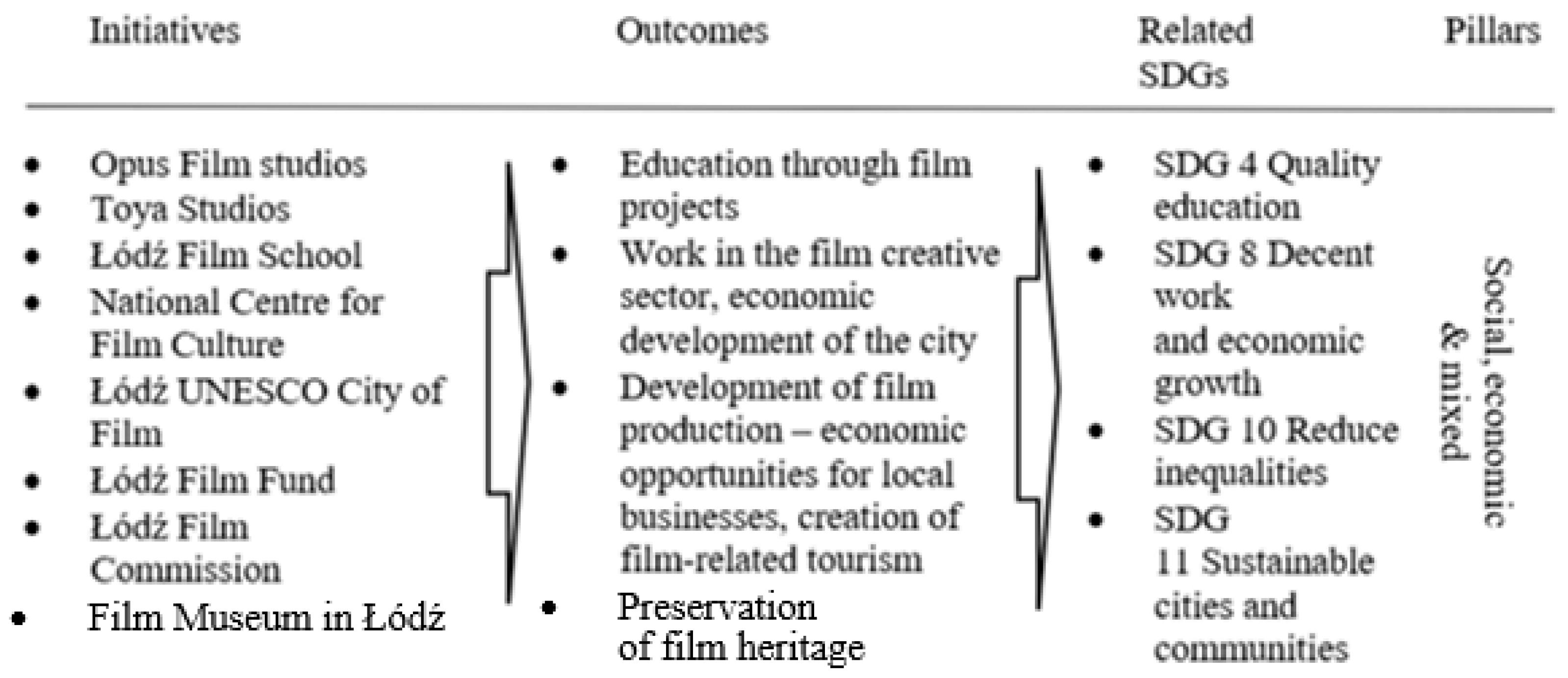 | Economic | SDG 8 (Decent Work and Economic Growth) | Jobs in the film sector, creative entrepreneurship, festival economy | Łódź/Mumbai |