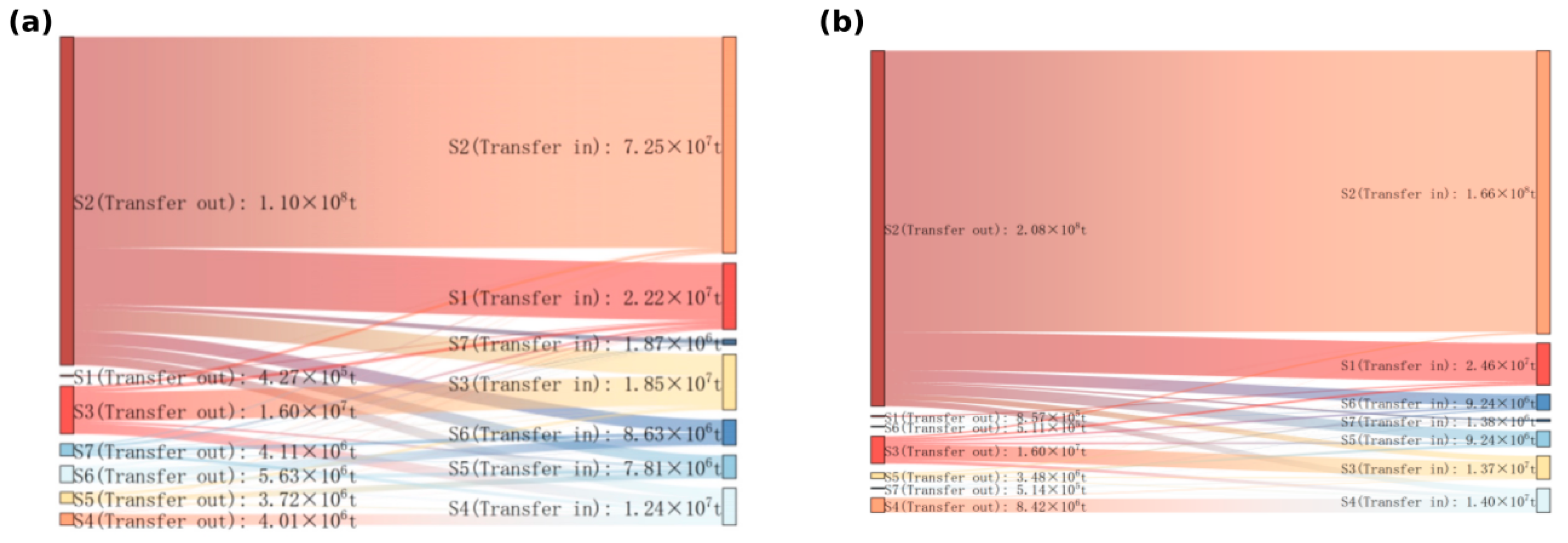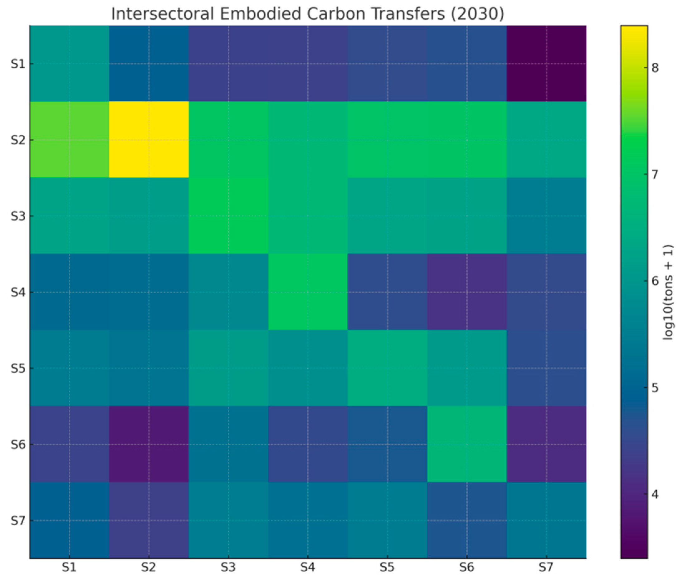 60]. The formation of this carbon transfer pattern is mainly influenced by a combination of factors, including sectoral output scale, energy intensity, and the degree of industrial chain interconnection (