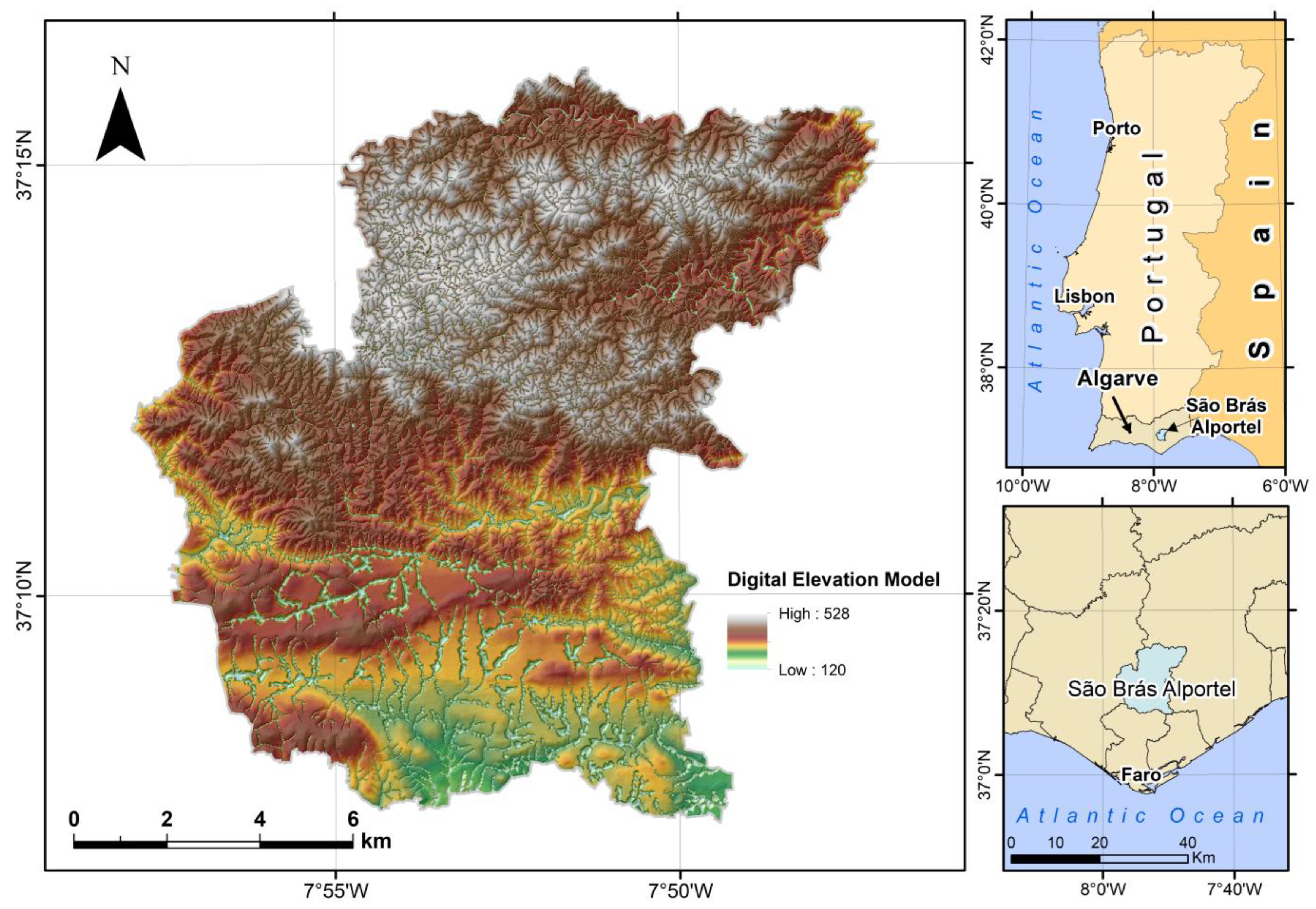 Soils in the Serra are skeletal, agriculturally unsuitable, predominantly schistose, and associated with an irregular relief. By contrast, the Barrocal is underlain by calcareous soils with gentler, less rugged topography, where limestone hills support Mediterranean vegetation [17]. Agricultural activity is therefore viable only within the Barrocal zone.