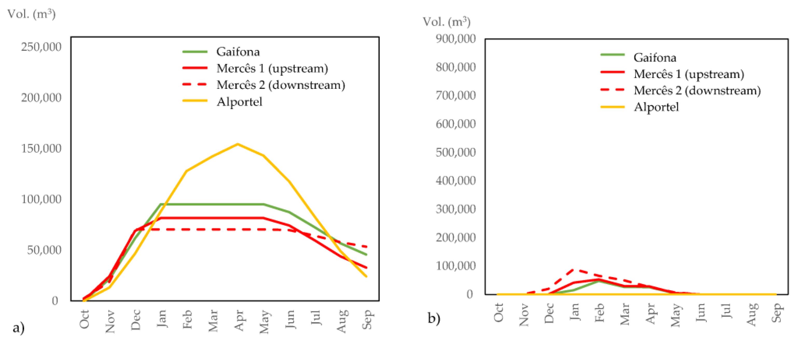 Table 15. Water balance of the Ribeira das Mercês upstream reservoir for the dry year.