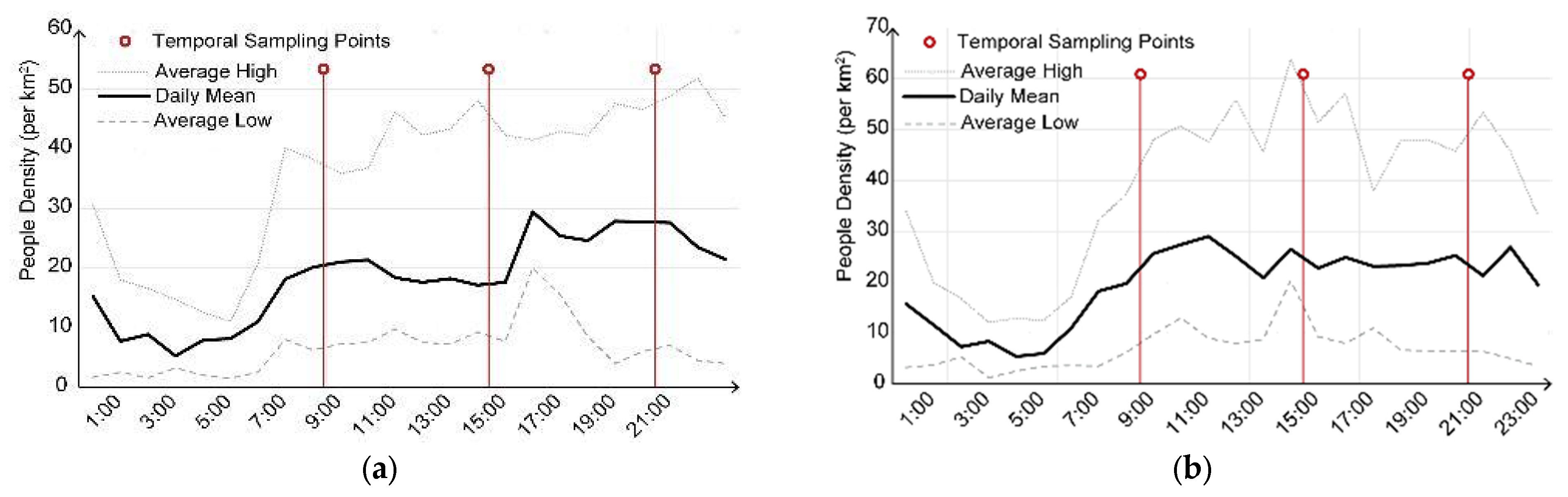 Figure 12). Network-related variables, such as road network density and intersection count, exert greater influence during commuting hours, reflecting elevated demand for transport connectivity and accessibility. In contrast, functional features—such as POI density and social service facilities—peak during non-peak hours, corresponding to increased leisure and discretionary activities. Standard deviations in feature importance further underscore these fluctuations, confirming that urban form impacts are temporally variable and evolve with daily rhythms.
