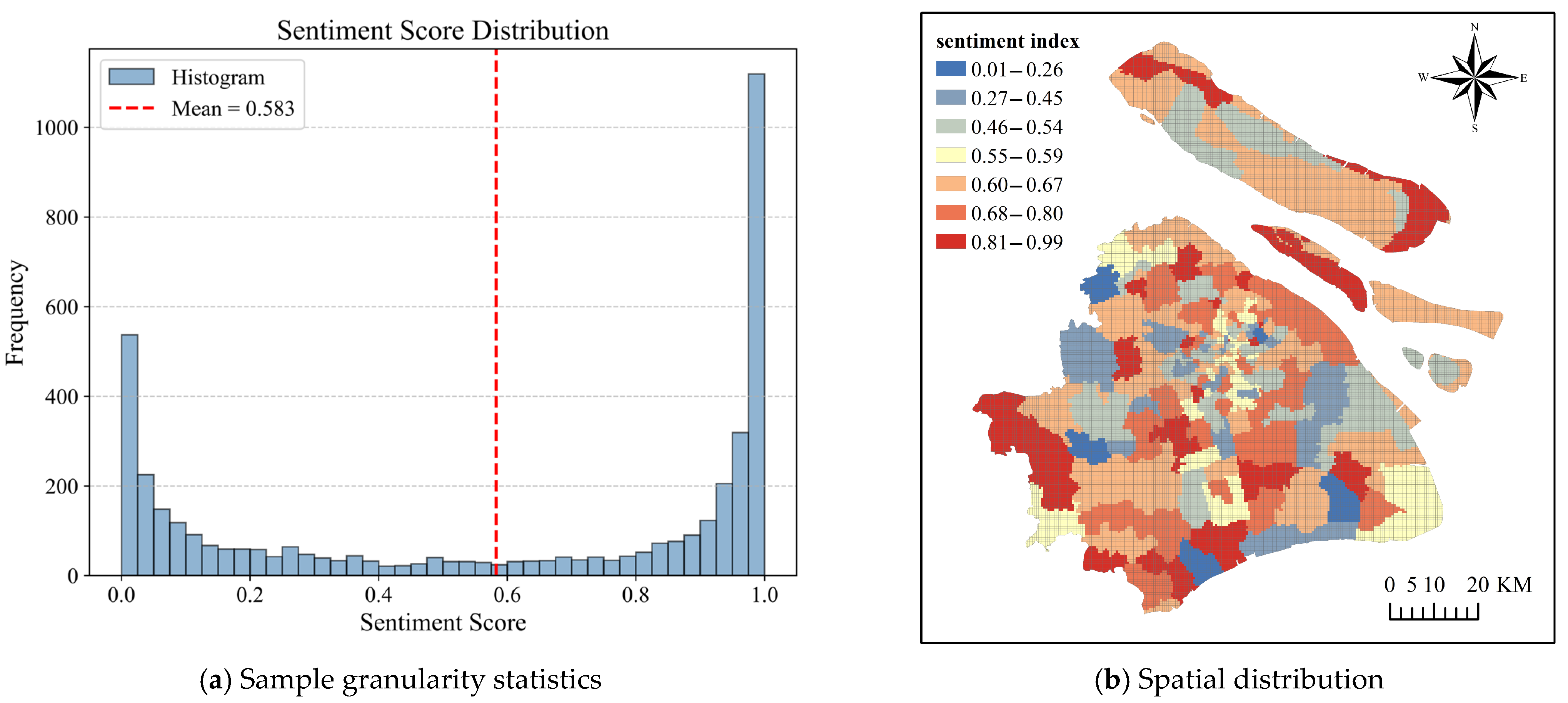 Figure 3. Statistical and Spatial Distribution of Sentiment Index.