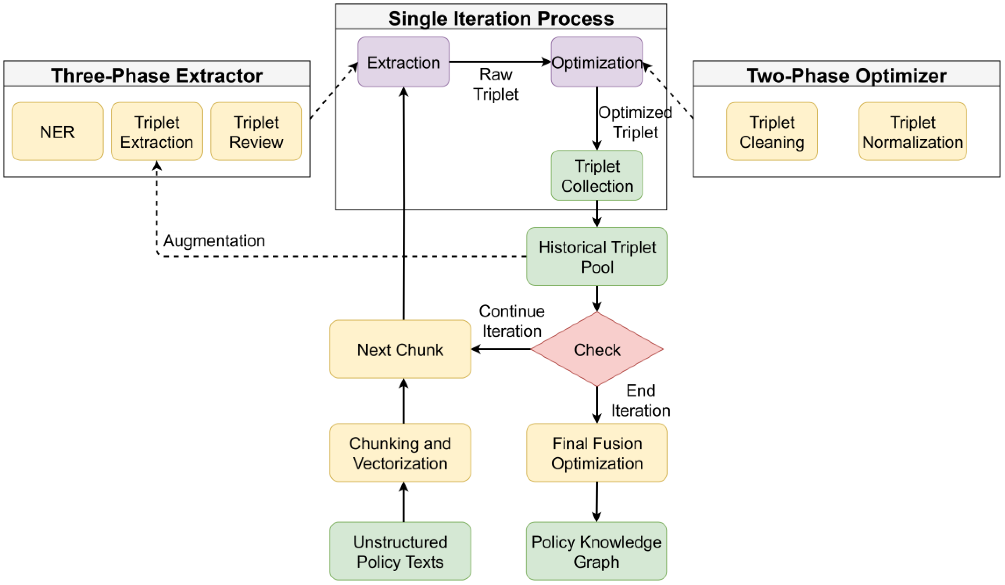 - We propose and validate a new method for constructing knowledge graphs from complex domain-specific texts. The IEO framework surpasses the traditional, static “one-pass extraction” pipeline by introducing the idea of “dynamic iteration and progressive enhancement.” This approach offers a feasible path for using large language models to process specialized, context-dependent corpora.
