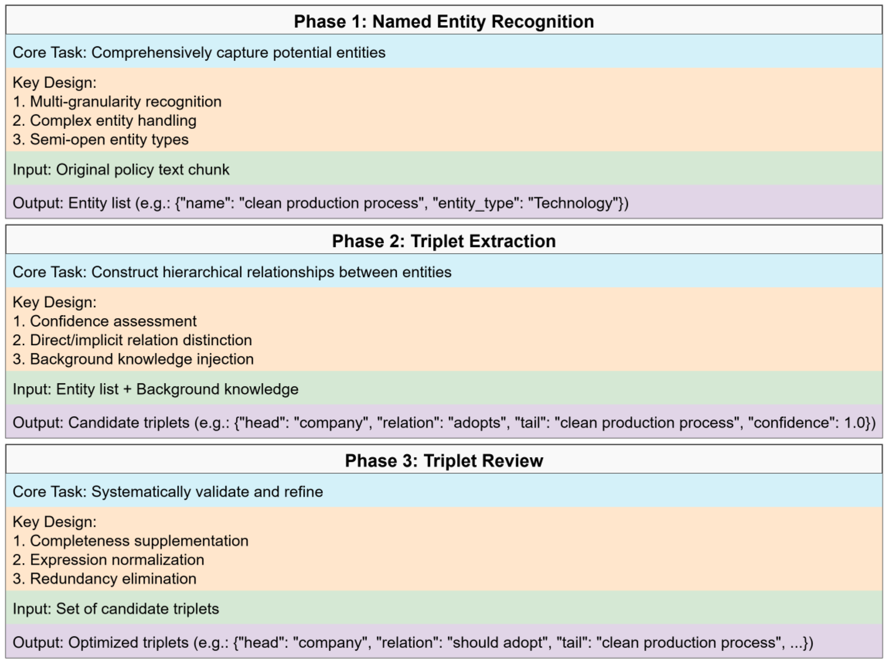 - Progressive Knowledge Discovery: As the background knowledge base grows, the framework can uncover deeper and more implicit entity relationships within the text, contributing to the construction of a more semantically coherent and consistent knowledge graph.