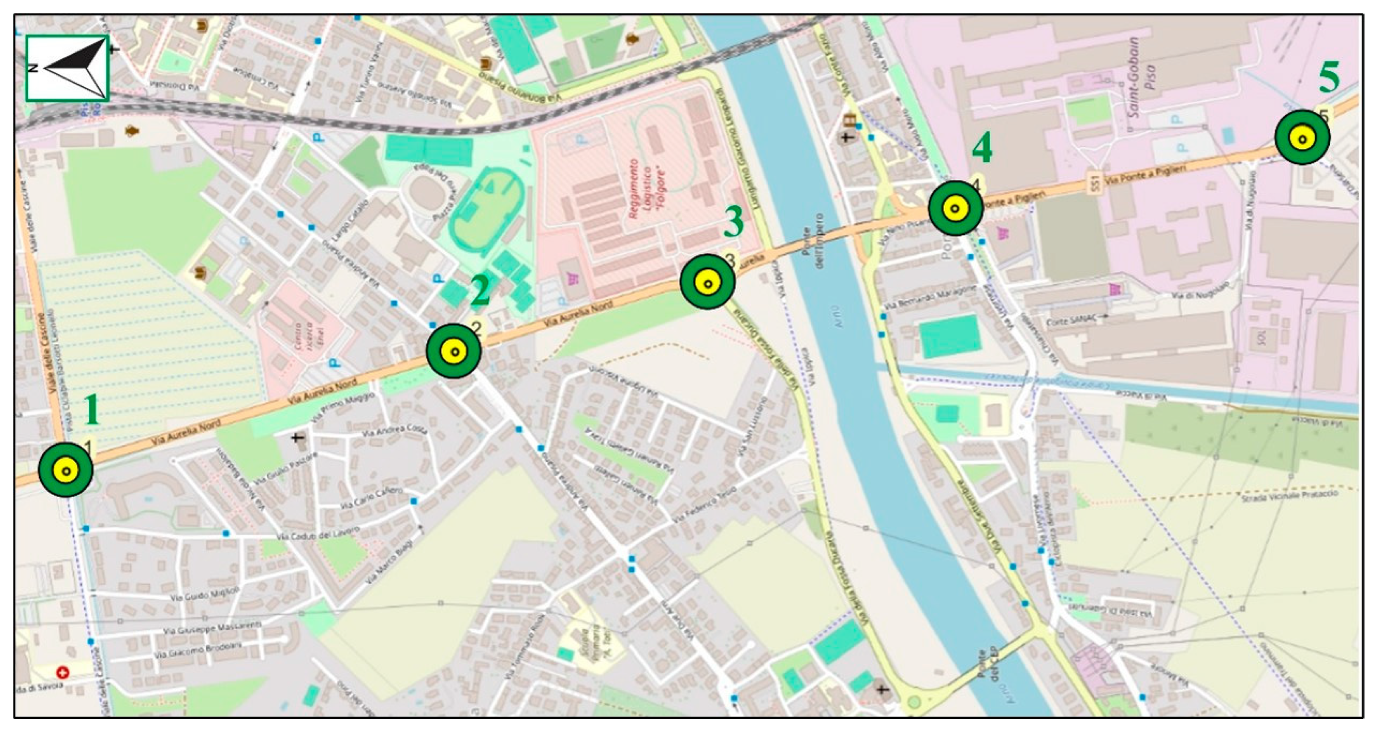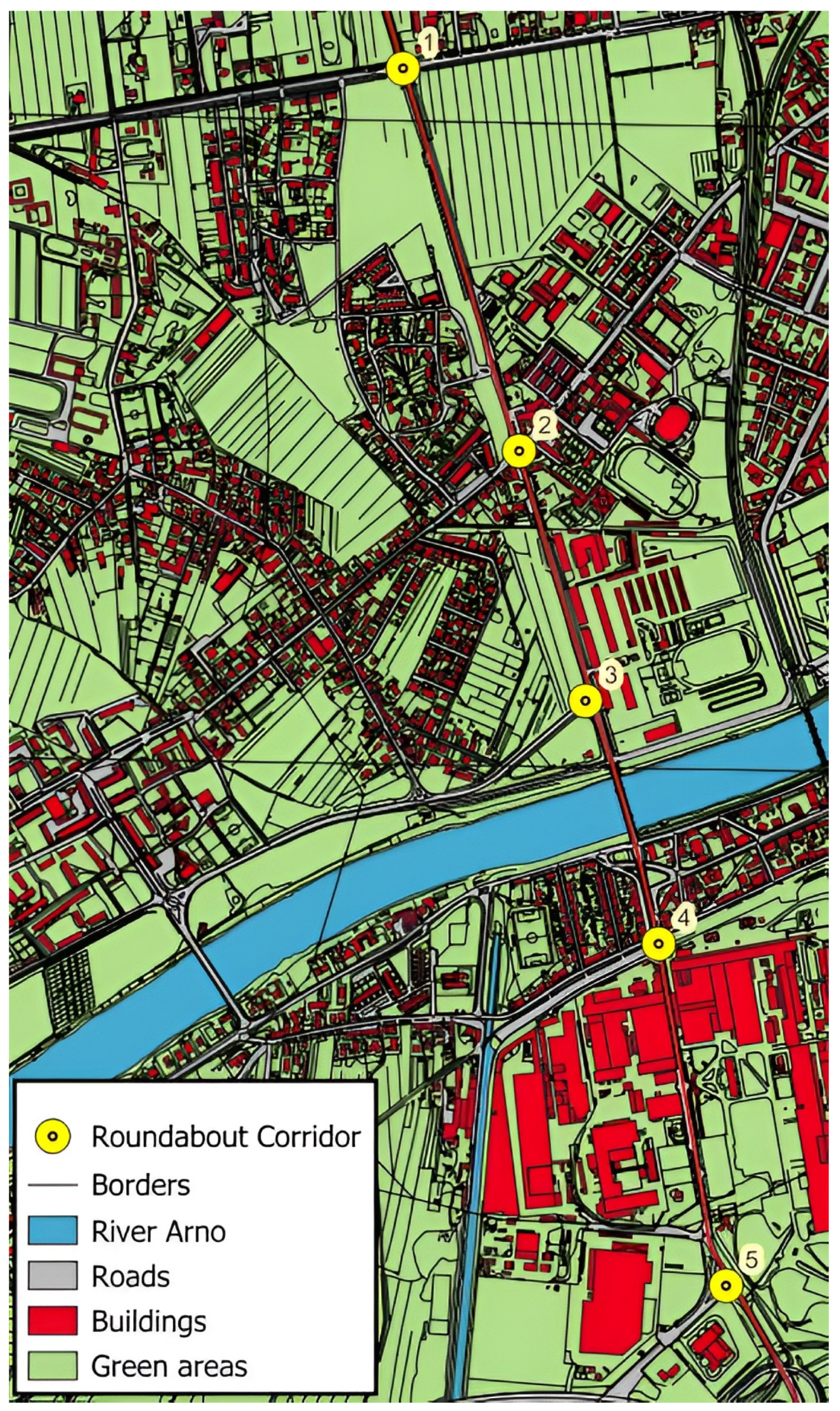 3.1. Characteristics of the Pisa Roundabout Corridor