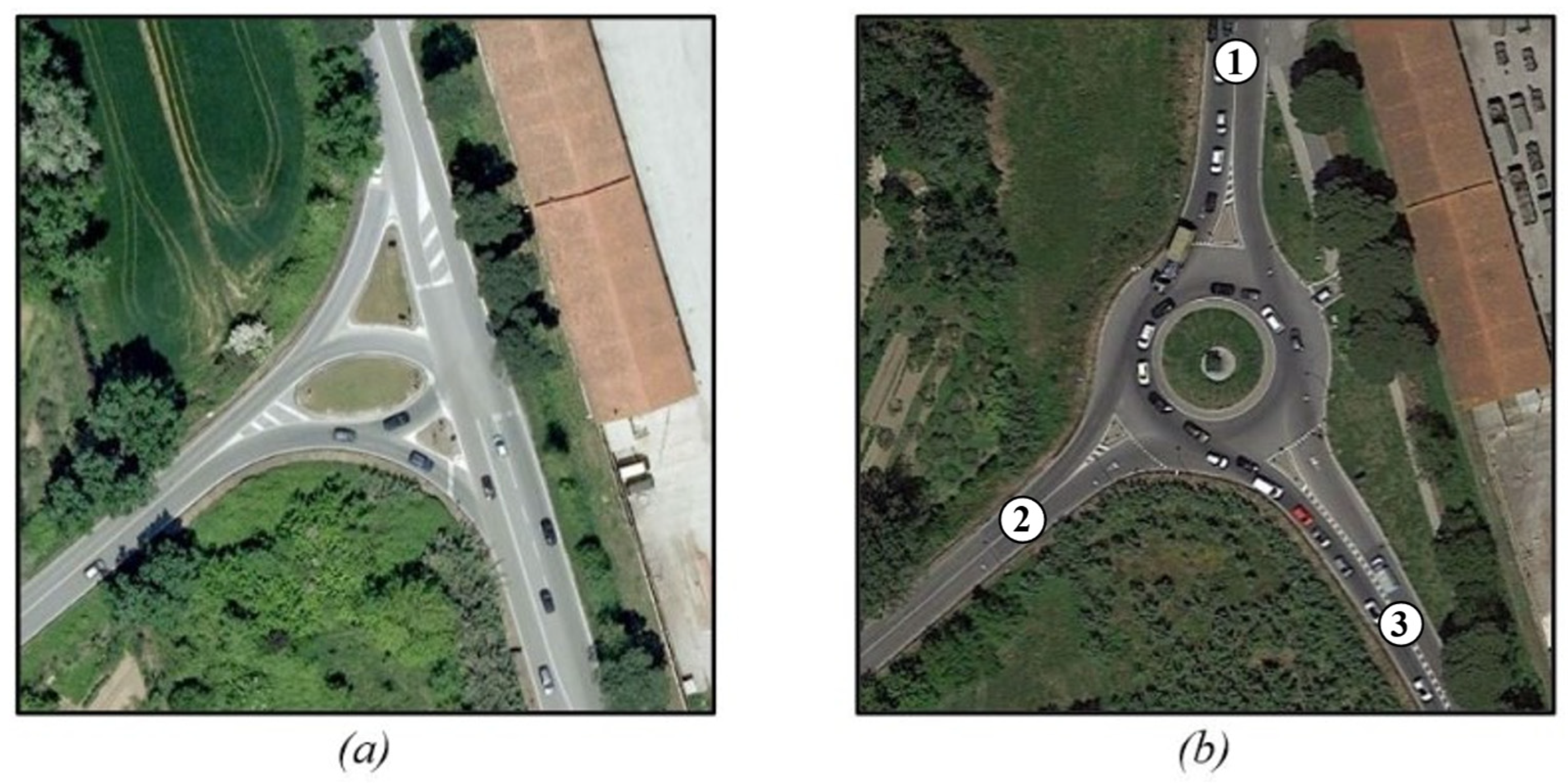 - Pratelli, A.; Brocchini, L. Two-Geometry Roundabouts: Estimation of Capacity. Transp. Res. Procedia 2022, 64, 232–239. [Google Scholar] [CrossRef]