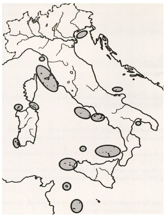 The area under consideration, located in the central region of the Mediterranean diversification centre [1], is characterised by a considerable richness in terms of genetic resources. In this regard, it has been documented that Hammer et al. [18] conducted a study of the geographic areas of origin of 524 taxa found in Southern Italy, identifying that the largest group (202 taxa) was composed of taxa from Southern Italy itself, indicating that their wild ancestors originated in that region. The extant evidence suggests that some of the plants cultivated in Southern Italy may have been introduced to that region when they were already domesticated in other areas. Nevertheless, their interaction with local varieties has exerted a substantial influence on the evolution of the indigenous species. It is evident that the geographical area in question functions as a reservoir of PGR, thereby underscoring its significance.