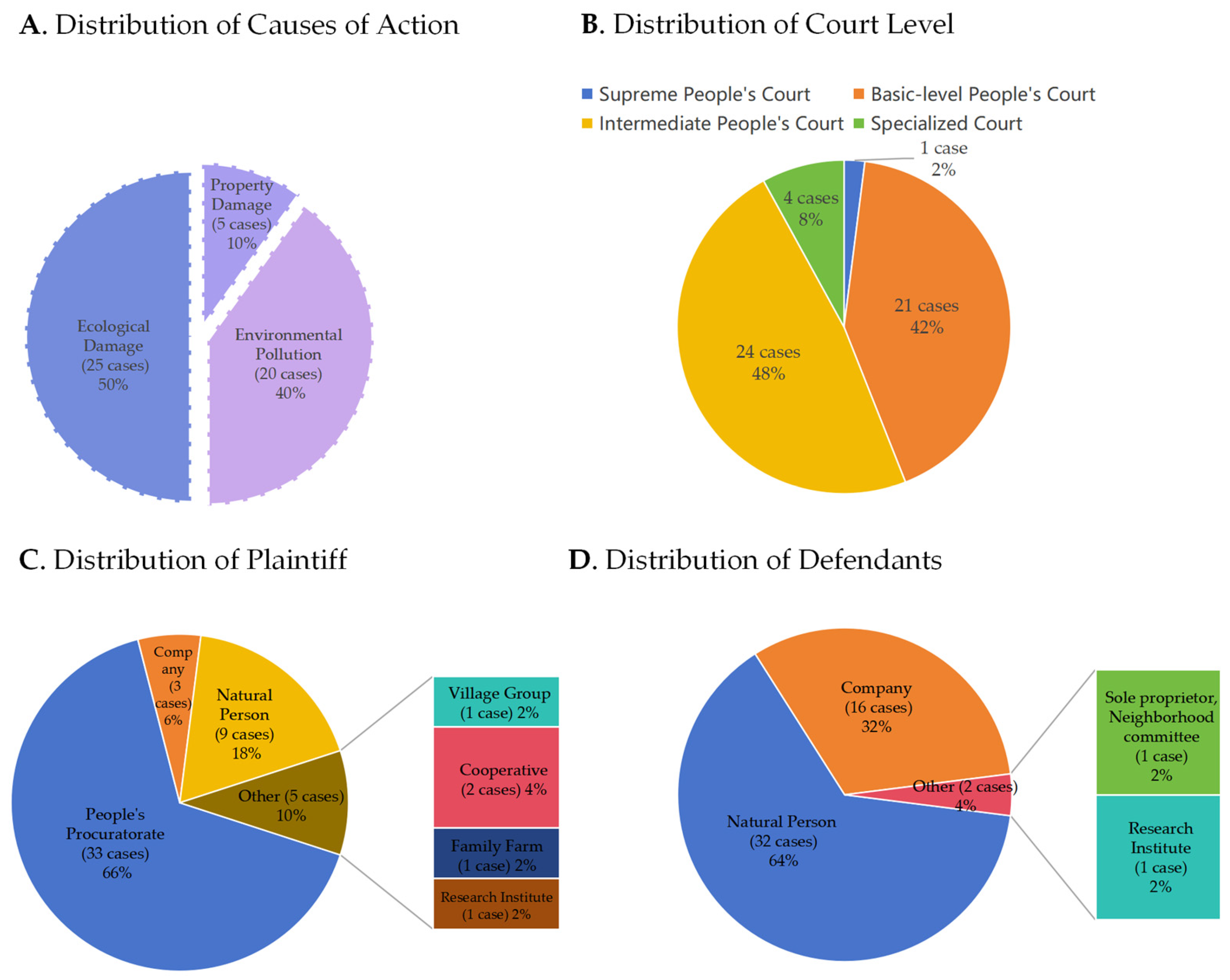 79]. In practice, there are three situations when private interest litigation and public interest litigation are filed at the same time for the same environmental tort. The first situation is that private interest litigation is filed before public interest litigation, and punitive damages of private interest litigation can be compensated first, and there is no distribution dispute. The second is to mention both at the same time. Plaintiffs in private interest litigation are often in a weak position in proof and professional ability, and they need to rely on the support of procuratorial organs. In order to encourage the victims to defend their rights, it is often more urgent to consider the damage of private interests (such as personal injury and property loss), and the public interests involved in public interest litigation generally do not directly endanger specific individuals [