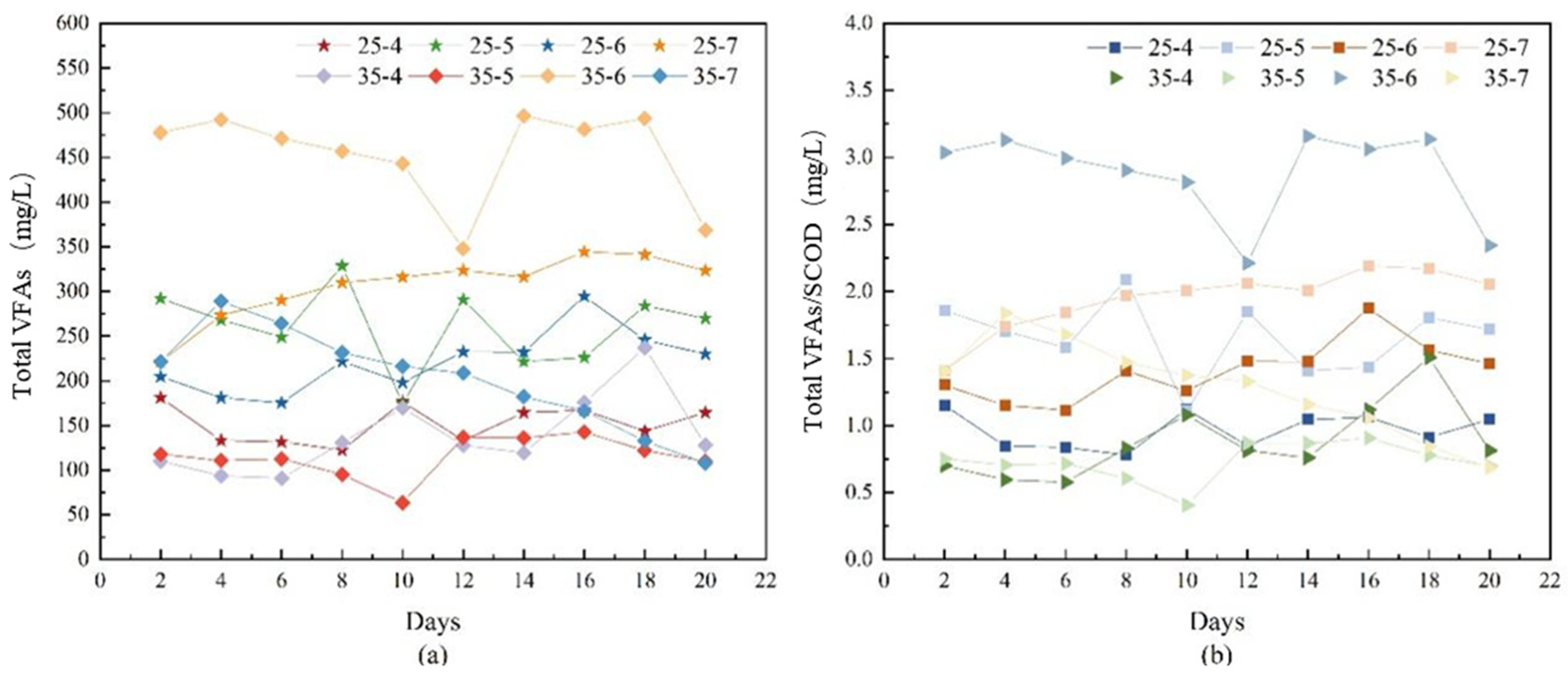 3.4. VFAs/SCOD Ratio as an Indicator of Acidification Efficiency