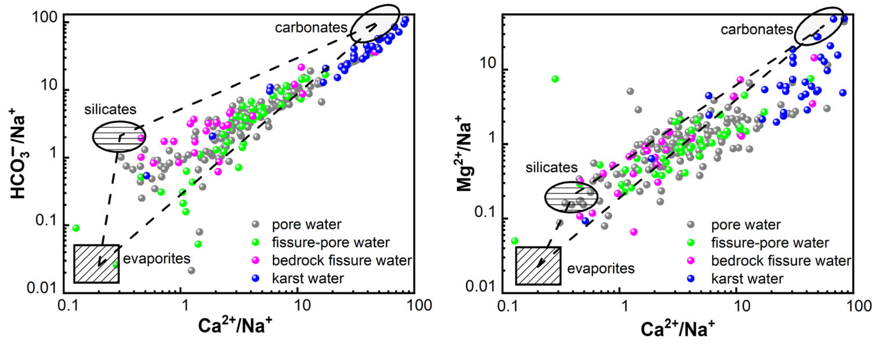 - Yu, S.; Wang, T.; Bai, X.; Chen, G.; Wan, P.; Chen, S.; Chen, Q.; Wan, H.; Deng, F. Hydrochemical characteristics and formation mechanisms of groundwater in the Nanmiao emergency groundwater source area, Yichun, western Jiangxi, China. Water 2025, 17, 2063. [Google Scholar] [CrossRef]