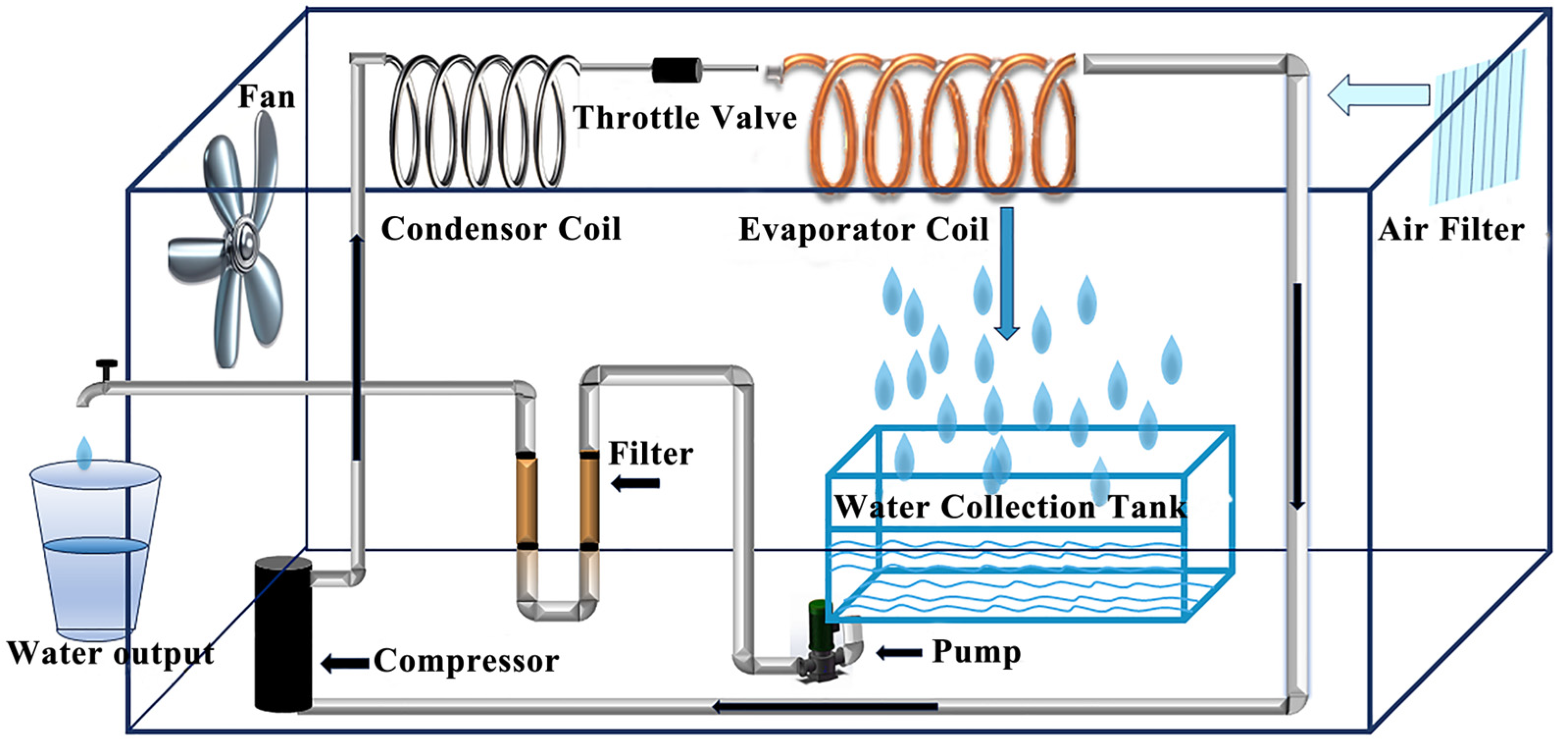 - Shafeian, N.; Ranjbar, A.; Gorji, T.B. Progress in atmospheric water generation systems: A review. Renew. Sustain. Energy Rev. 2022, 161, 112325. [Google Scholar] [CrossRef]