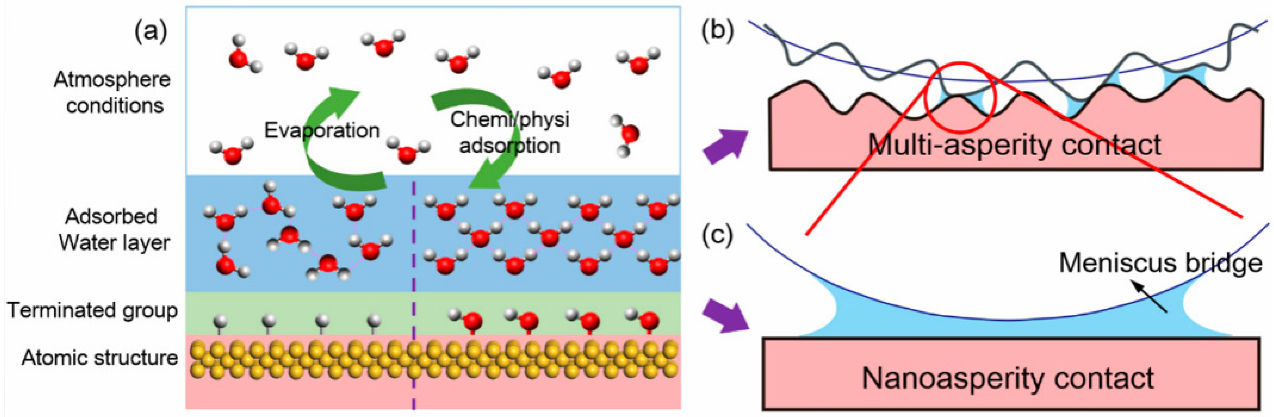 - Xiao, C.; Shi, P.; Yan, W.; Chen, L.; Qian, L.; Kim, S.H. Thickness and structure of adsorbed water layer and effects on adhesion and friction at nanoasperity contact. Colloids Interfaces 2019, 3, 55. [Google Scholar] [CrossRef]