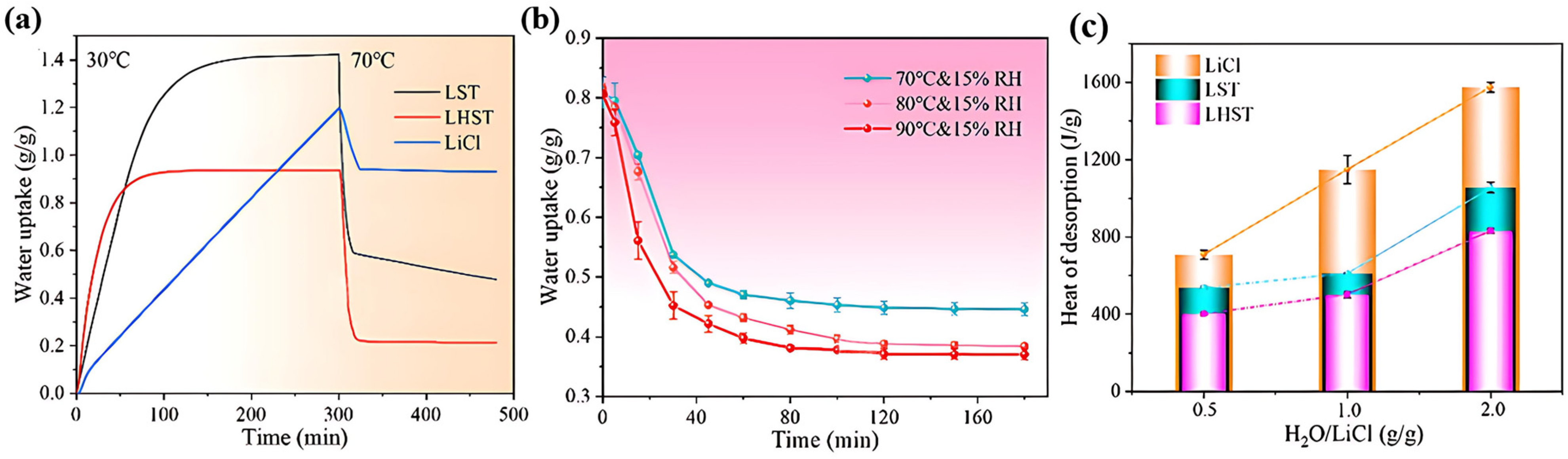 | LiCl | 0–50 °C | 40–90% | 3–4 kg/kg | Strong moisture absorption, cheap; Corrosive, easily deliquescent | [68] |